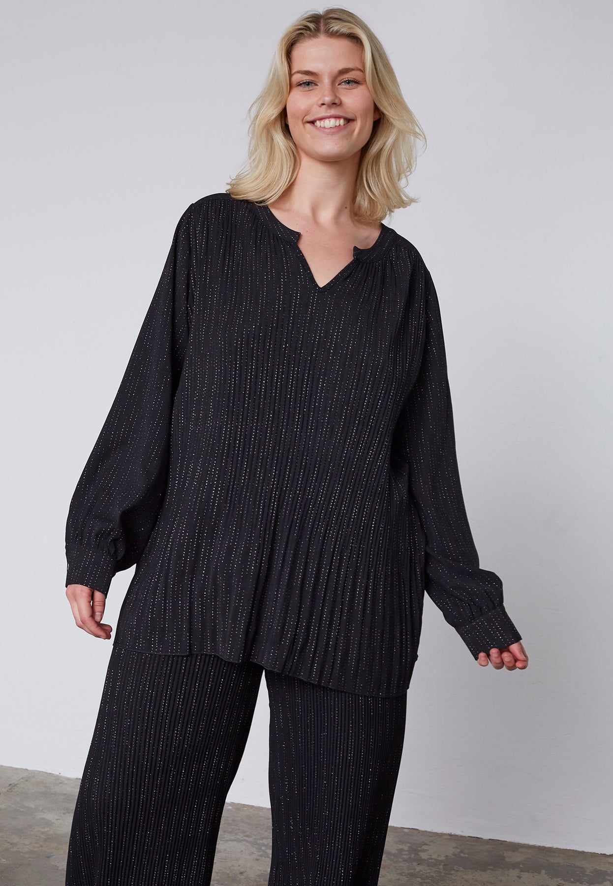 Denne bluse fra ADIA forener elegance og enkelhed i ét. Den lette polyester falder blødt om kroppen og skaber en flatterende A-shape, der giver et afslappet, men stadig raffineret udtryk. Designet er alsidigt og kan nemt styles både til hverdagen og de mere særlige lejligheder.