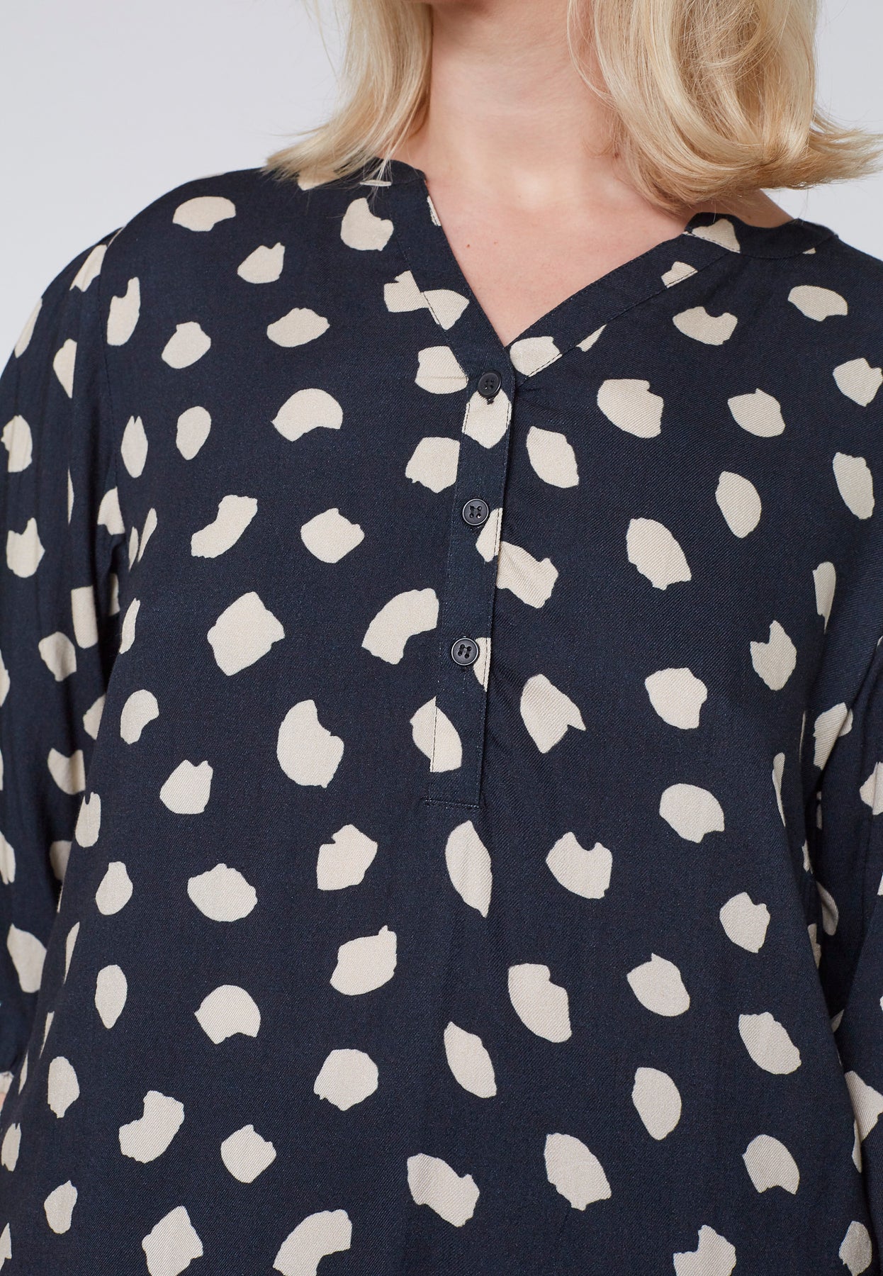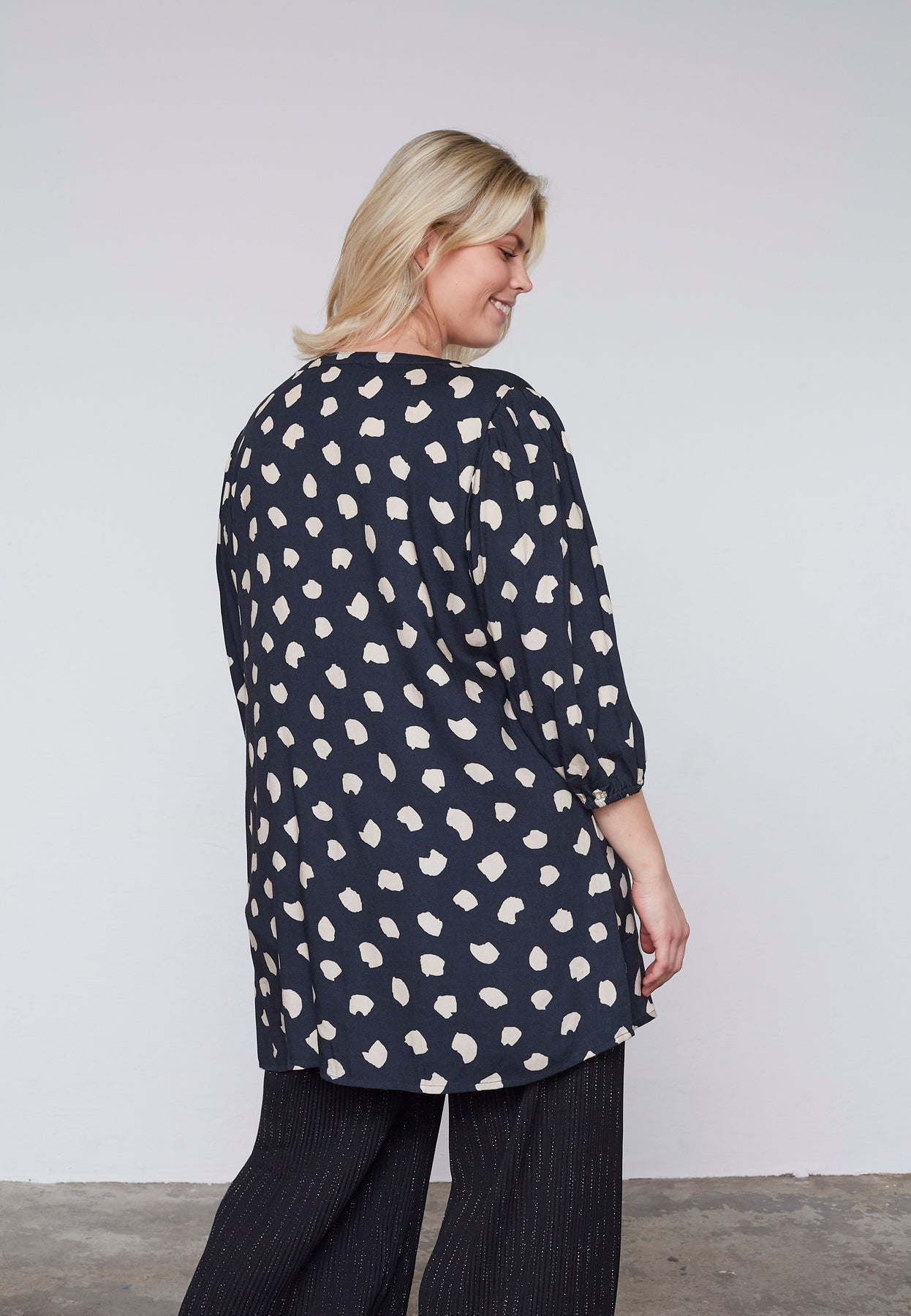 Denne tunika fra ADIA er indbegrebet af feminin elegance kombineret med komfort. Den lette viscose falder smukt og skaber en flatterende A-shape, der giver et luftigt og ubesværet udtryk. Printet tilføjer personlighed og gør tunikaen ideel til både hverdagsbrug og særlige lejligheder.