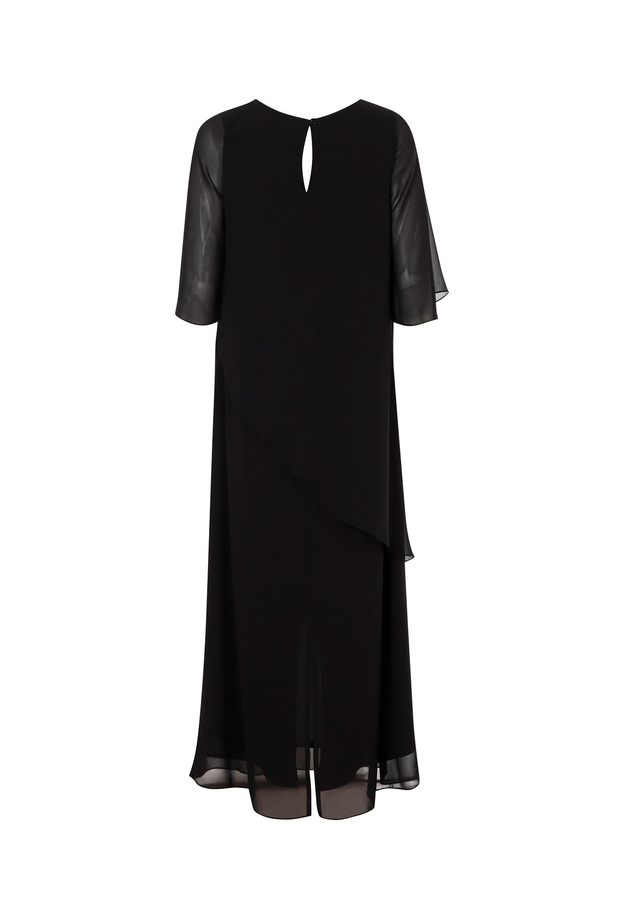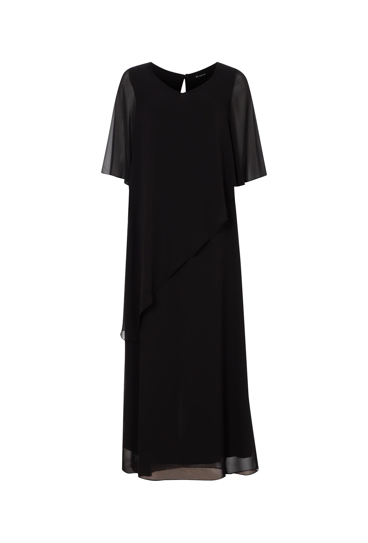 Kjole fra Elinette i hellangt design med en blød V-hals og ¾-lange ærmer. Kjolen er lavet i en god, let polyesterkvalitet i lag med en skrå drapering, og den har en lige, afslappet pasform.