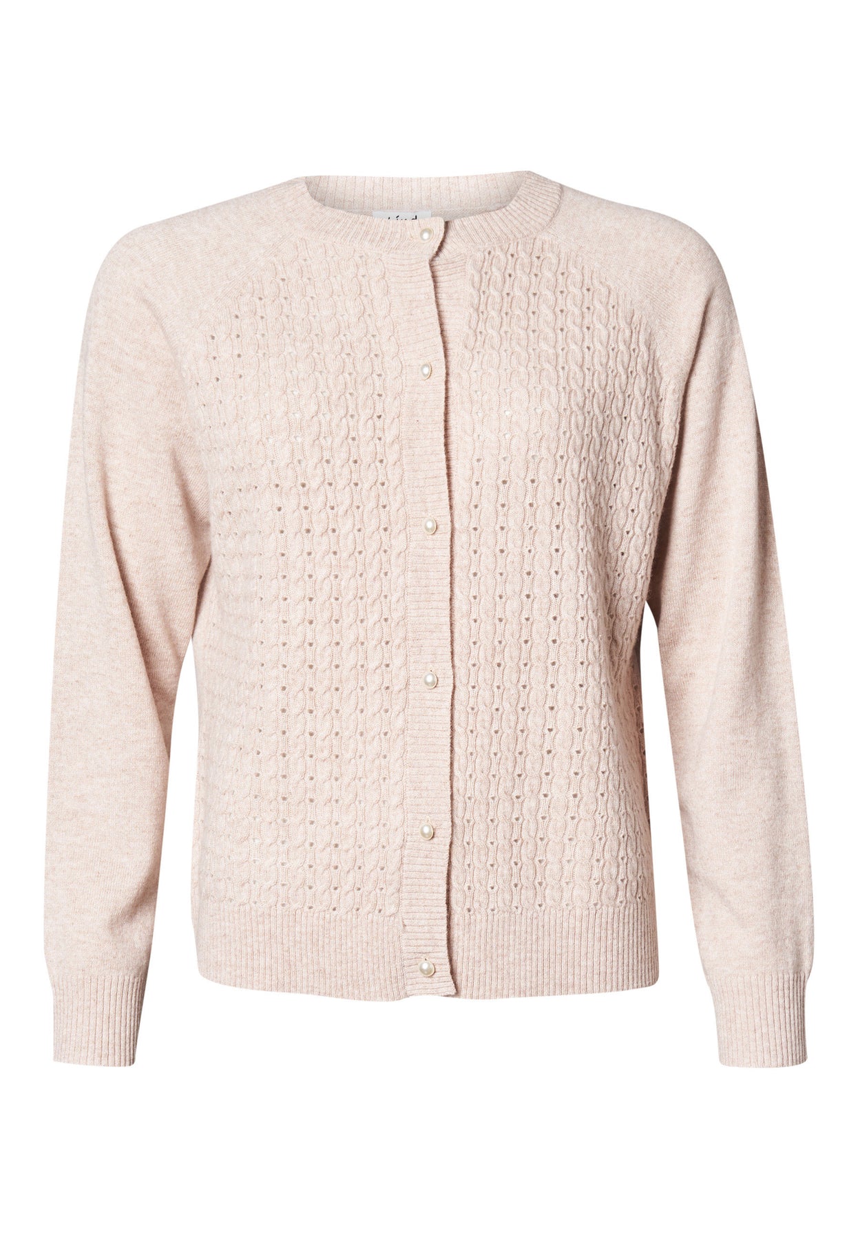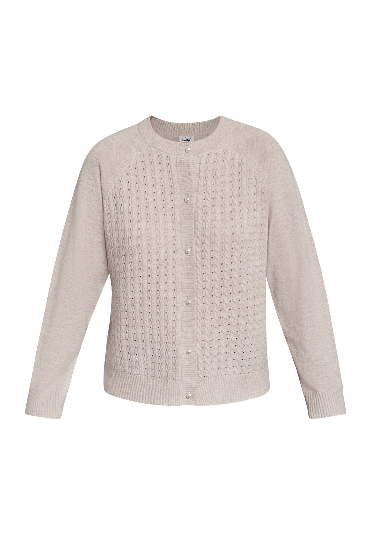 Denne strikkede cardigan fra Lind er en blød og elegant klassiker, der hurtigt bliver en favorit i garderoben. Det fine strukturmønster giver et feminint og harmonisk udtryk, mens den lette og varme strikkvalitet gør den skøn at have på – både til hverdag og de lidt køligere dage.
