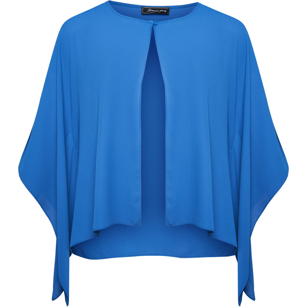 Sødt sjal i et kappe-inspireret design med en rund hals med en lille knap som lukning foran. Den har et ensfarvet design og draperer super flot ned langs overkroppen. Sjalet er udført i en ren polyesterkvalitet, og den har en lige pasform.