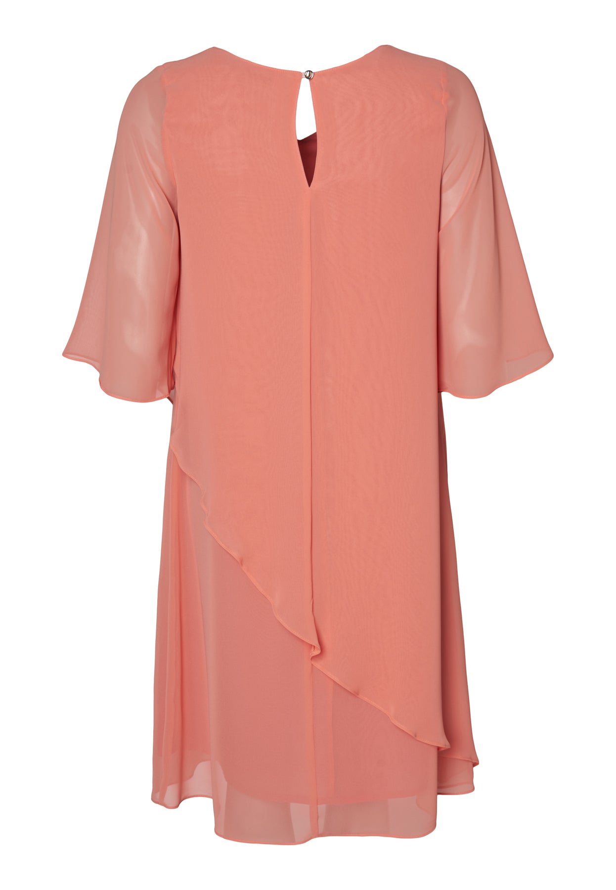 Skøn midikjole fra Elinette med løse ærmer og skråt snit fra hoften og ned mod knæet. Lille v-halsudskæring og lukning i nakken.