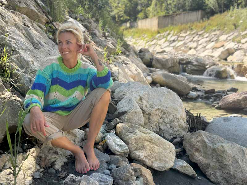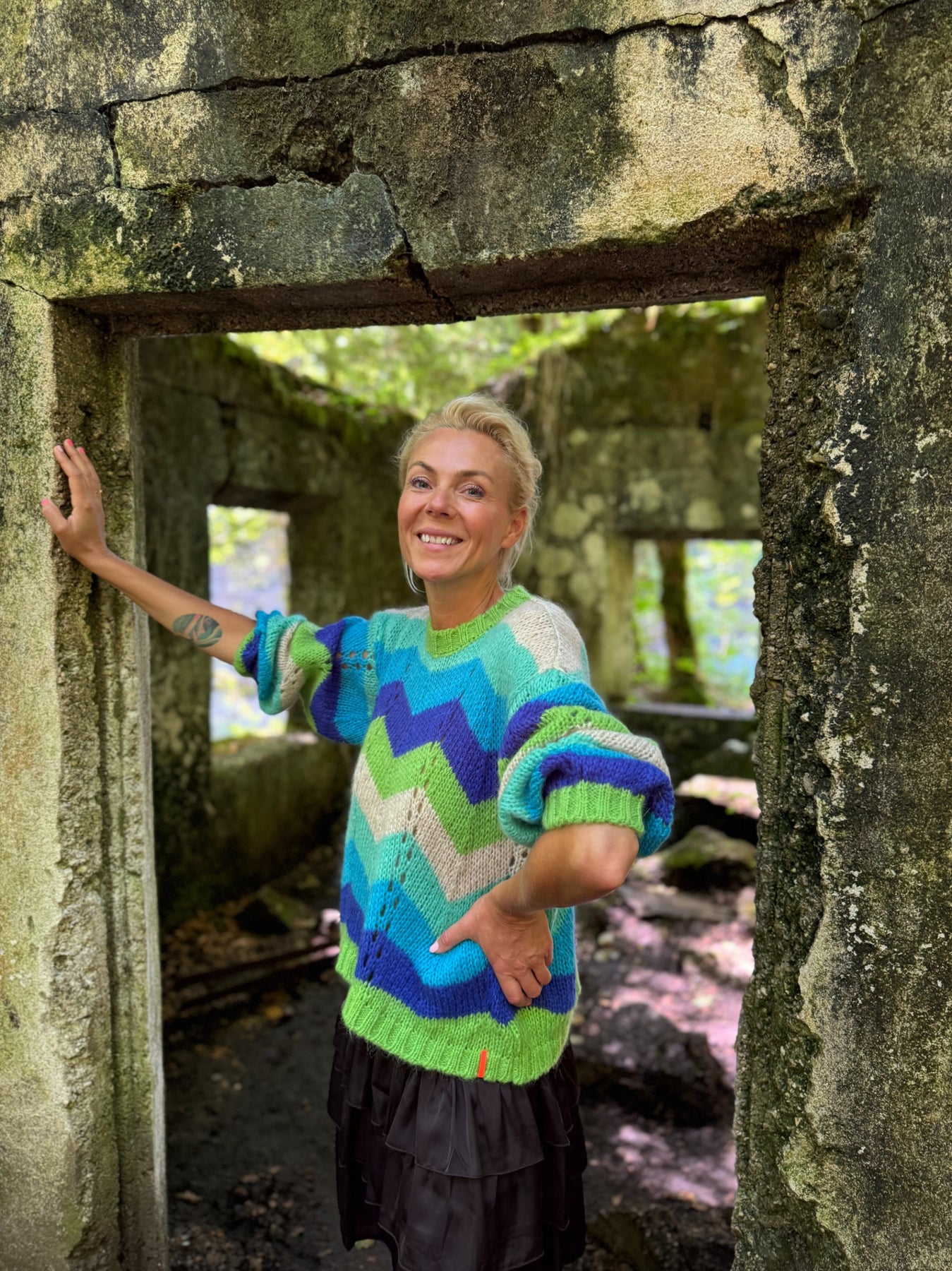 Lene Beier har sat sit præg på designet med sin sans for livsglæde, varme og autenticitet. Sweateren er produceret i Italien i en skøn mohairblanding, der føles blød, let og varm på samme tid – en kvalitet, man mærker med det samme.