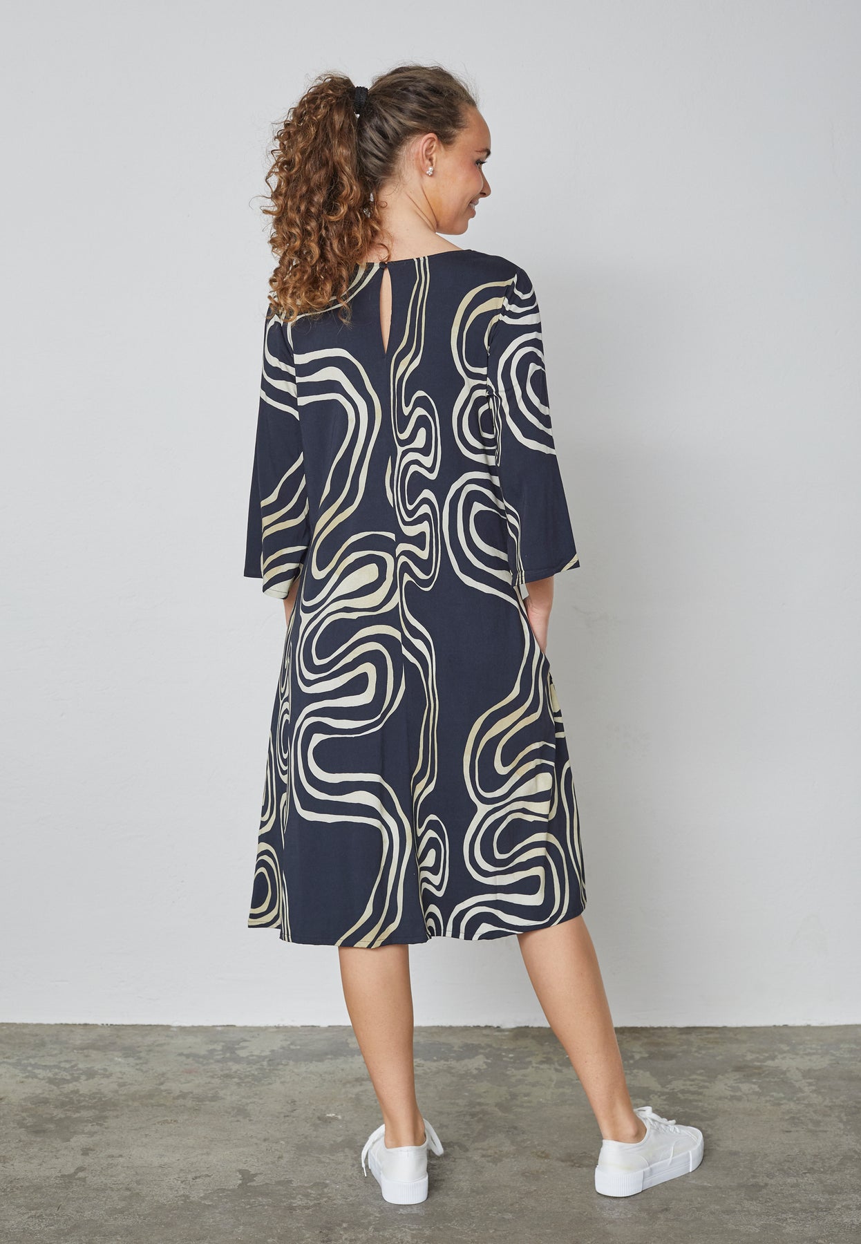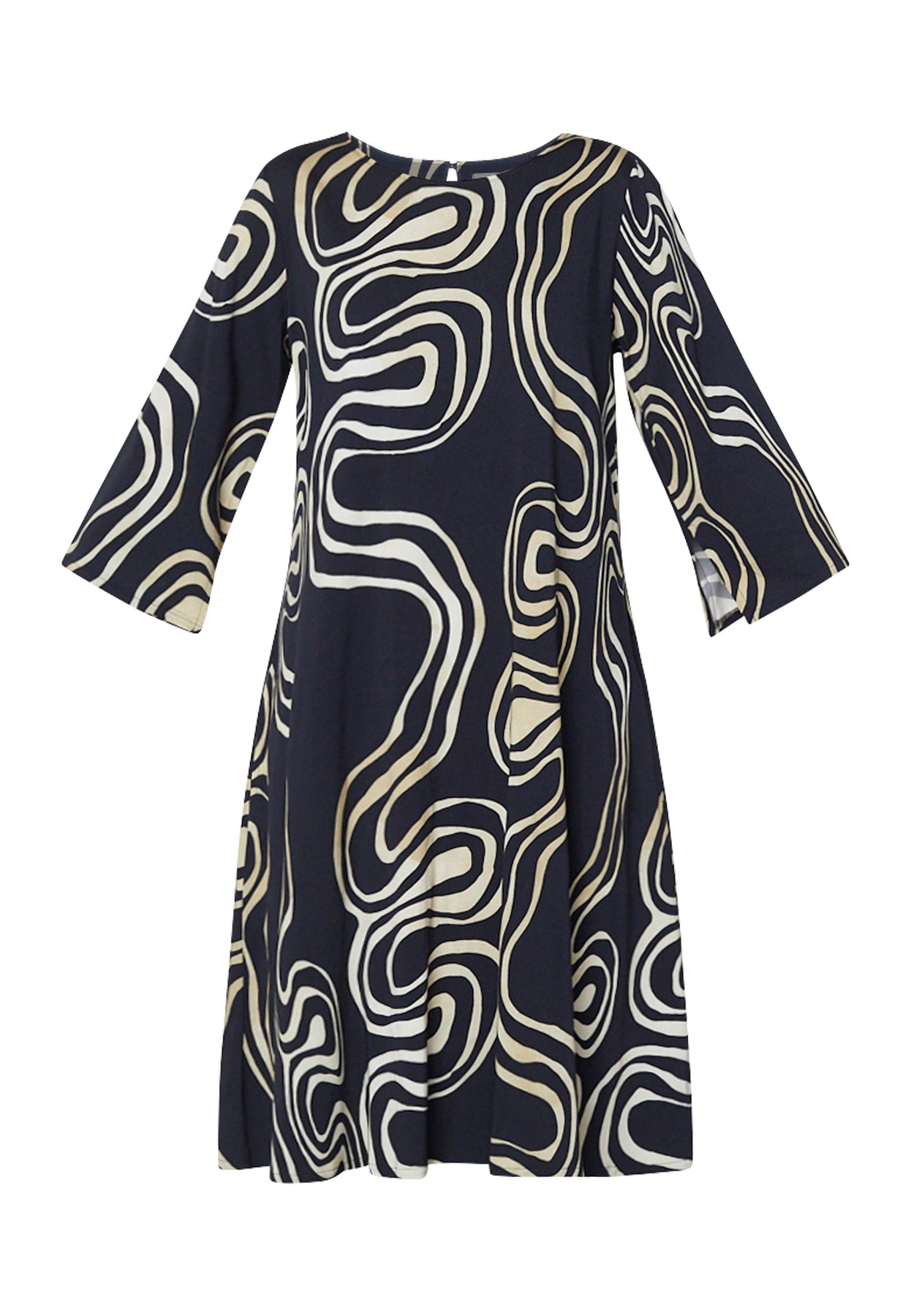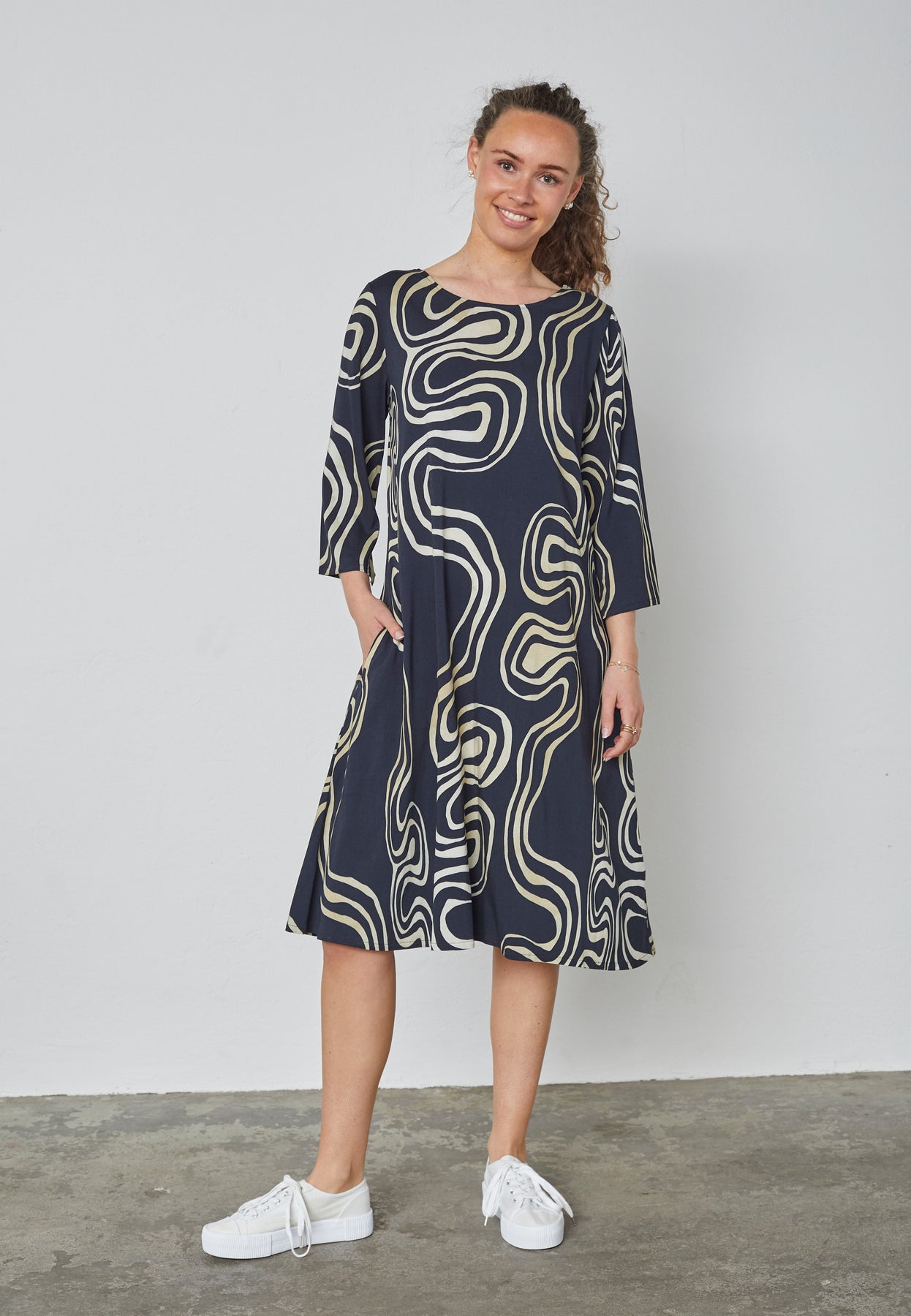 Denne kjole fra Elton kombinerer et kunstnerisk print med et elegant og feminin snit. Det detaljerede mønster giver kjolen et eksklusivt og levende udtryk, mens den bløde viskosekvalitet med let stræk sikrer en smuk pasform og høj komfort. Den fugursyede silhuet understreger kroppen kurver på en sofistikeret måde og gør kjolen velegnet til både hverdag og mere særlige anledninger.