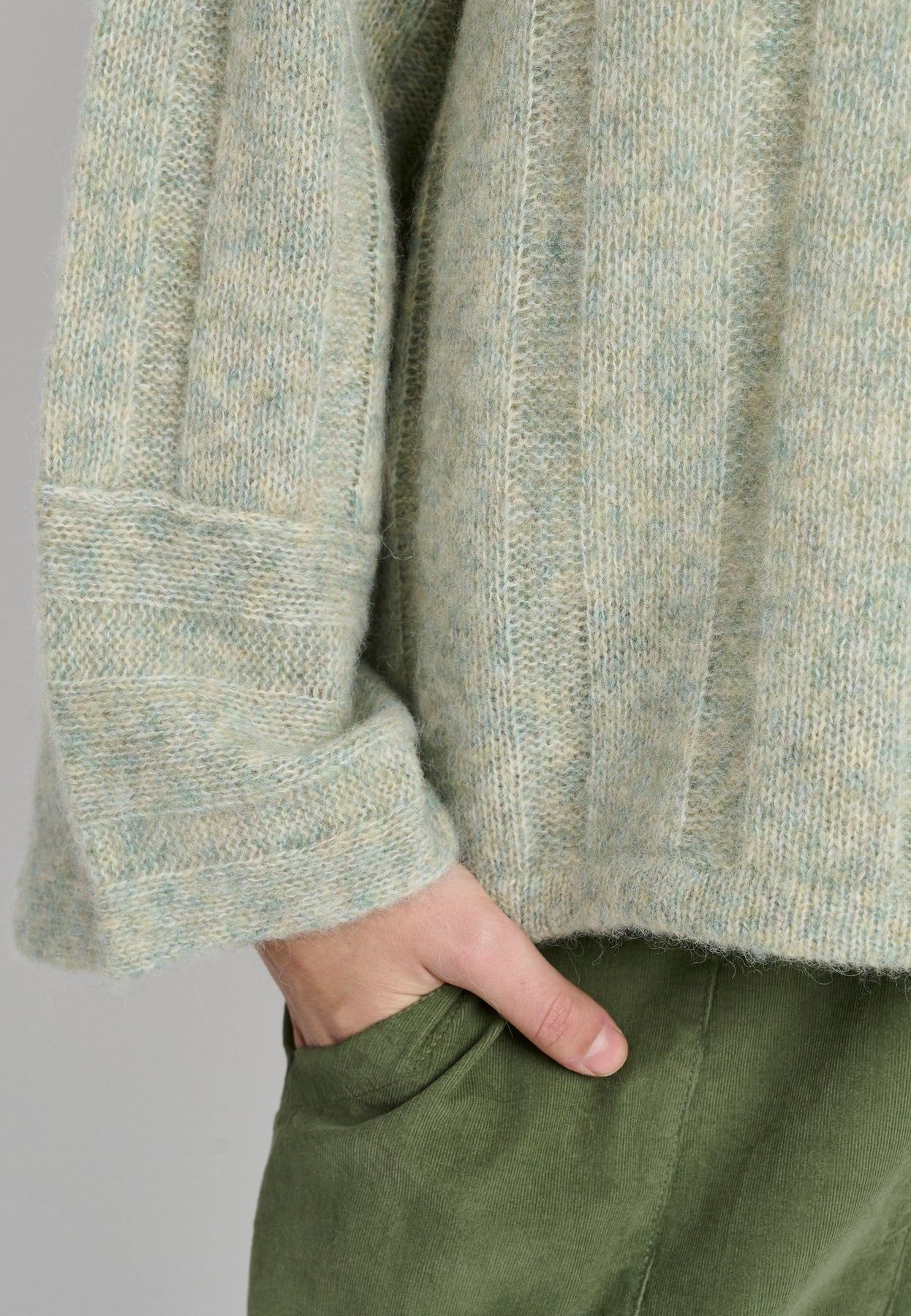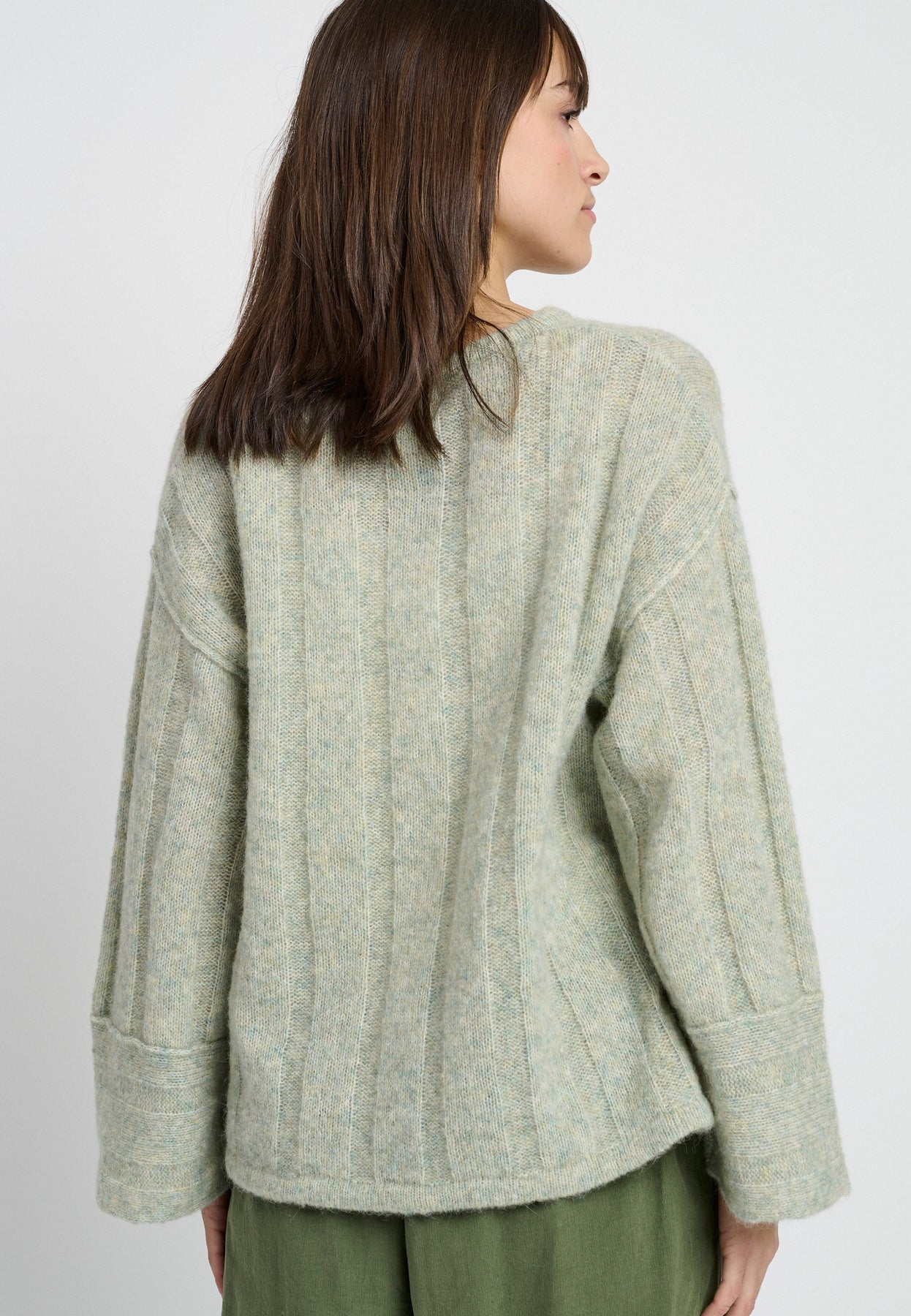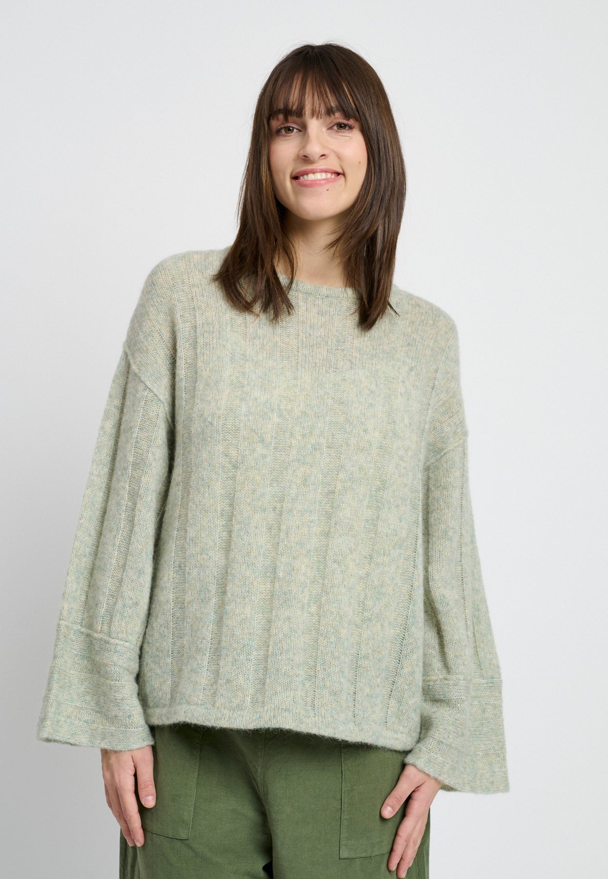 En blød og moderne striktrøje i en eksklusiv alpaka- og uldblanding, der kombinerer luksus og komfort. Trøjen har en lige og afslappet pasform med rund hals og brede ribkanter, som giver den et afslappet og cool look. Garnets let fluffy tekstur tilføjer varme og en naturlig elegance – perfekt til både hyggelige dage og stilfulde outfits.