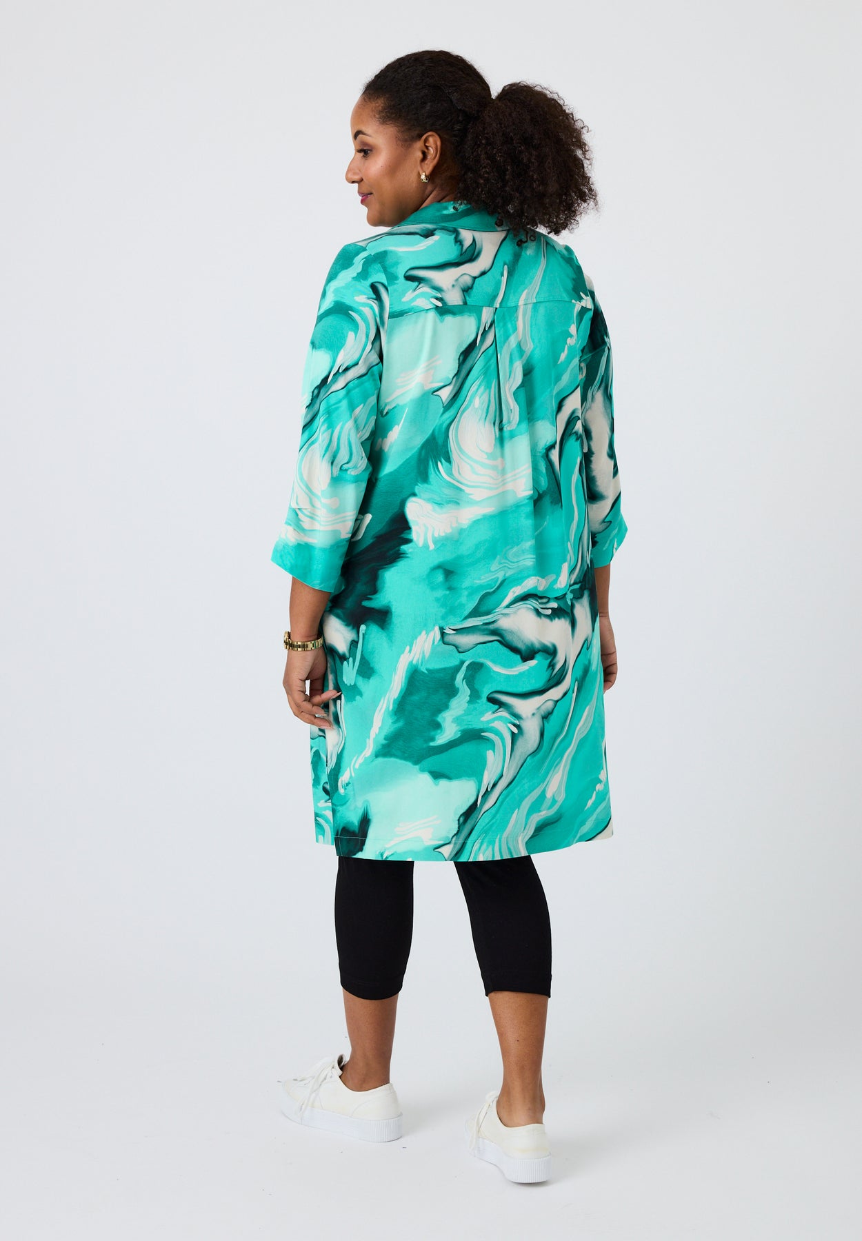 Style den med smalle bukser eller leggings for et balanceret look, eller lad den stå alene som statement-piece i et enkelt outfit.