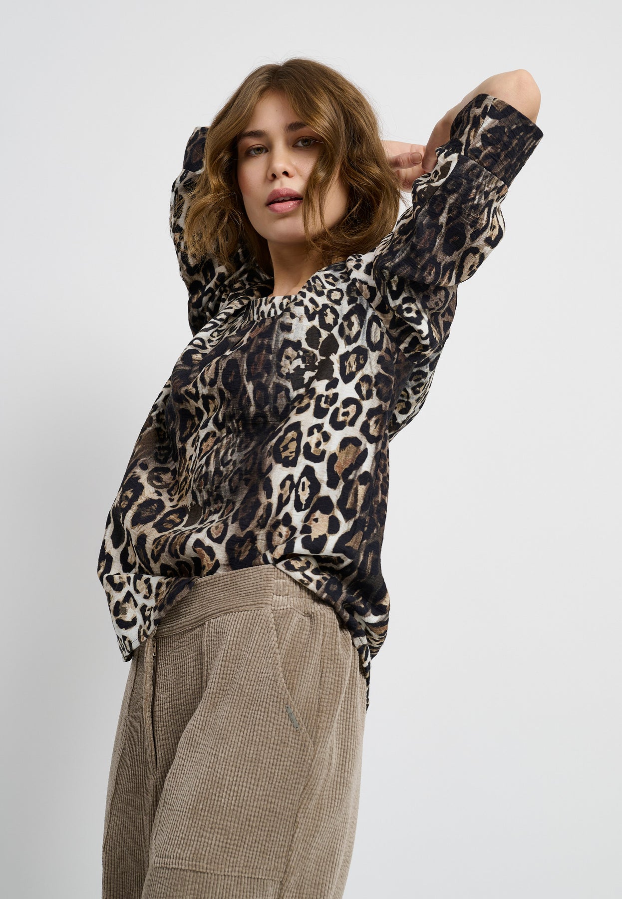 En feminin og alsidig bluse i et levende print, der giver et moderne løft til enhver garderobe. Blusen har rund hals, lange ærmer og en lige pasform – nem at style både til hverdag og fest. Det lette materiale giver blød bevægelse og en behagelig fornemmelse mod huden.