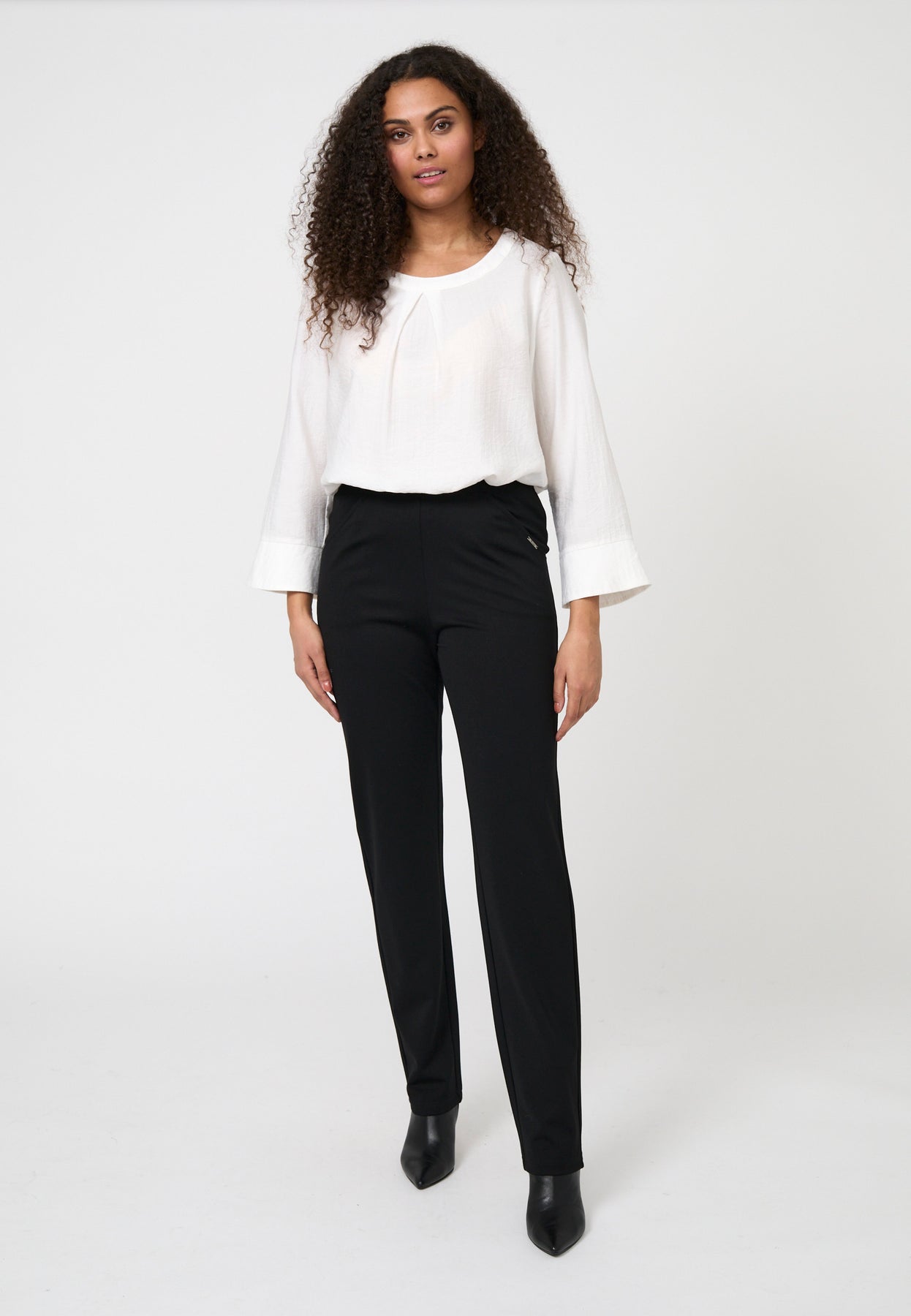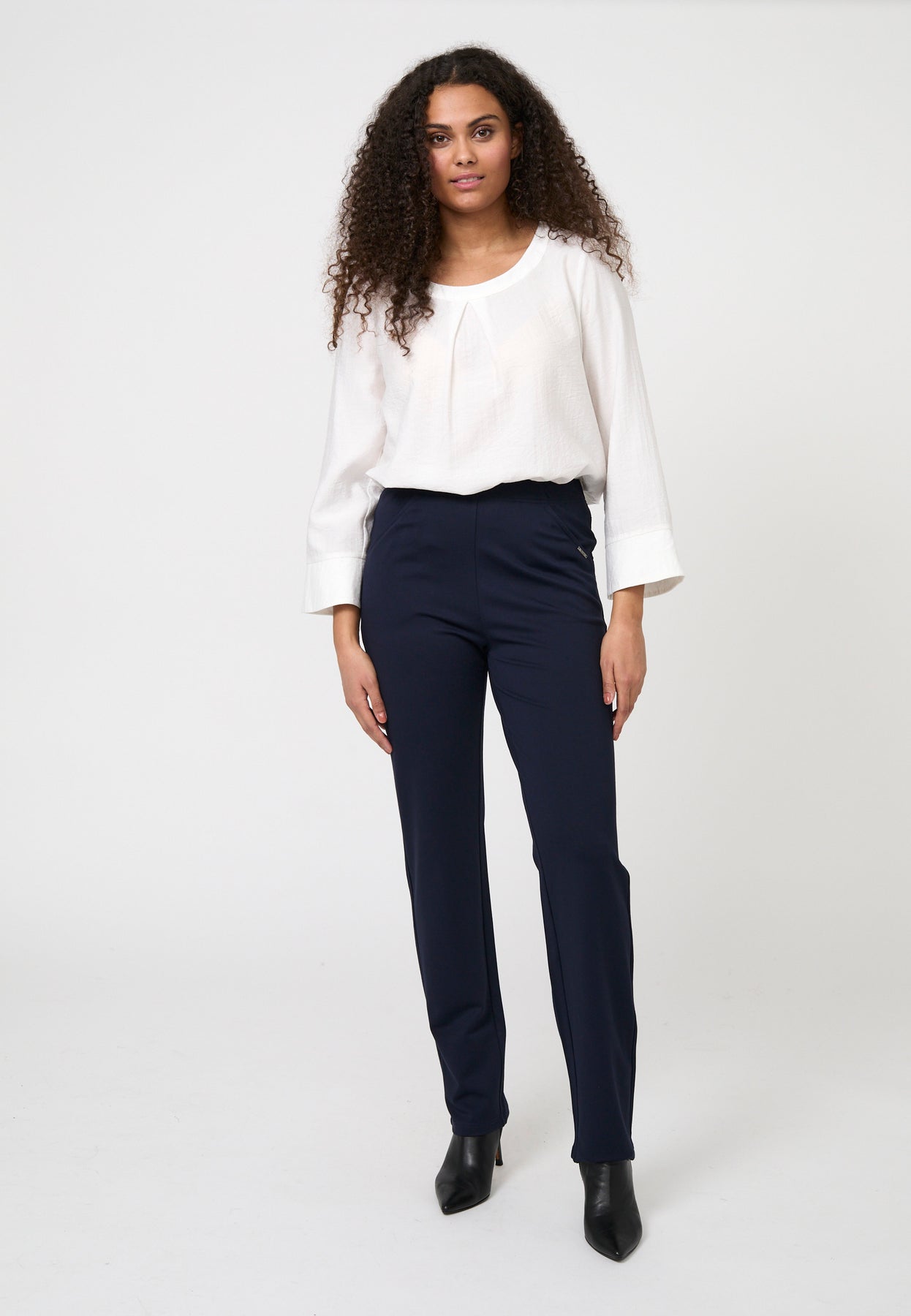 Modellen hedder Nika og er lavet af 60% viskose, 35% polyamid og 5% elastan. Pasformen er ’Shaped’, og de er 80 cm lange i indersømmen.