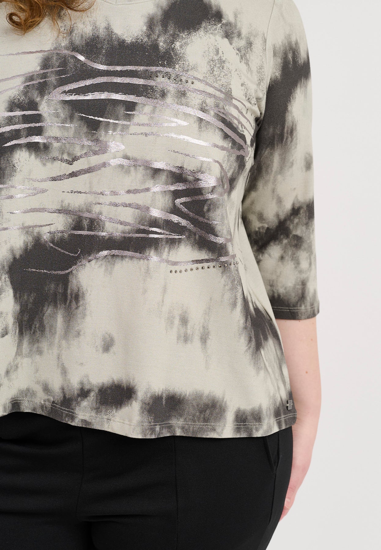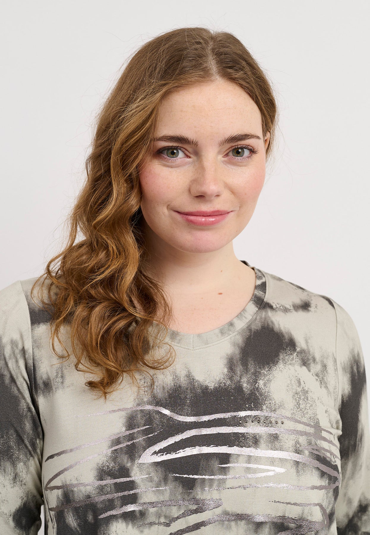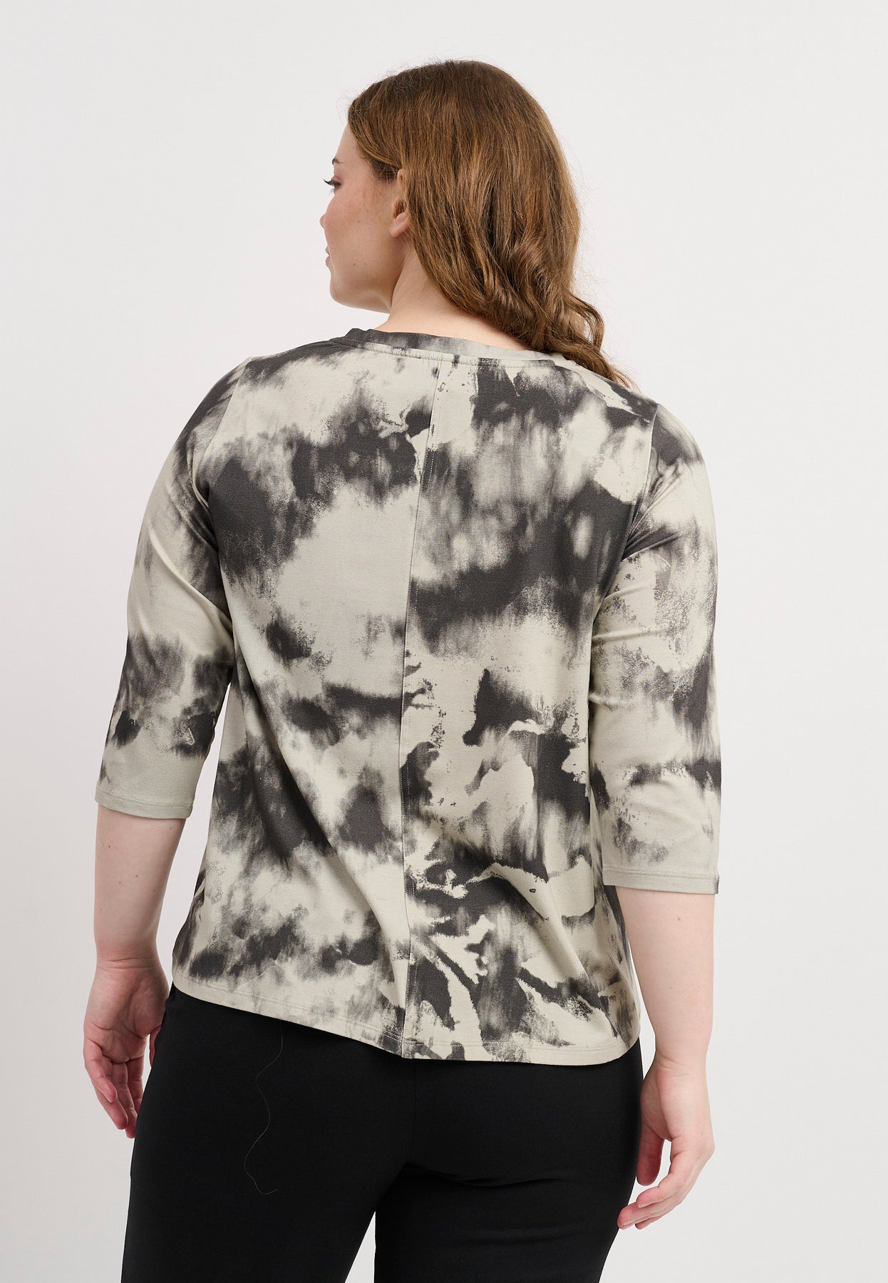 En flot og behagelig bluse med et levende print, der skaber spil og karakter i dit outfit. Modellen har en lige pasform med 3/4-ærmer og en klassisk rund hals. Den er lavet i en blød jerseykvalitet med stretch, som giver en behagelig og fleksibel fornemmelse hele dagen. Printet tilfører et kunstnerisk udtryk, der gør blusen velegnet til både hverdag og pænere brug.