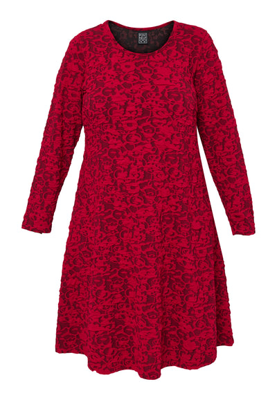 Med sit smukke mønster og feminine A-form skaber denne kjole en levende silhuet, der både er let at bære og fuld af udtryk. Stoffet har en blød kvalitet med diskret stræk, der følger kroppens bevægelser og understøtter kjolens elegante fald. En kjole, der inviterer til at blive brugt igen og igen.