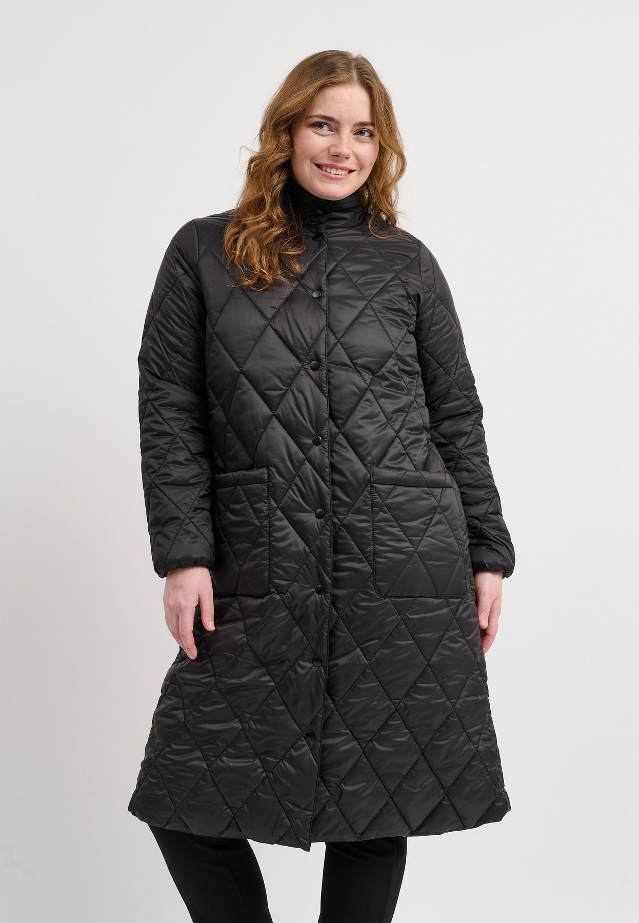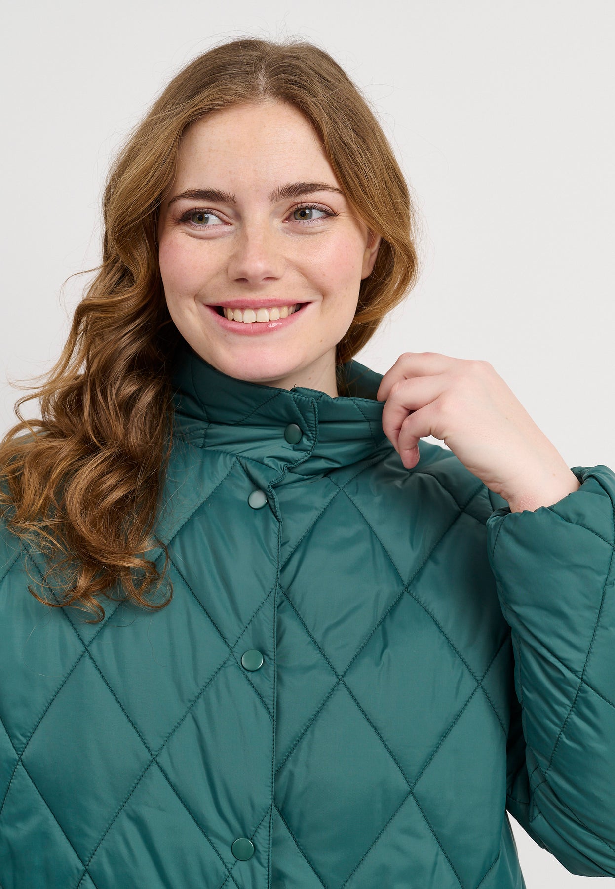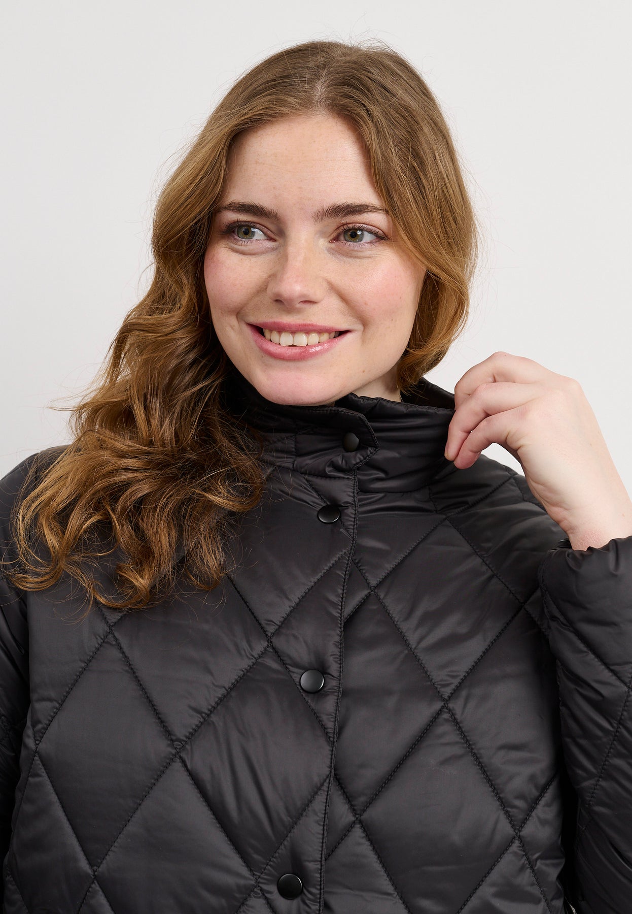 En stilfuld og funktionel jakke i en flot quiltet kvalitet, der kombinerer komfort og mode på bedste vis. Jakken har et moderne A-formet snit, der giver plads og bevægelsesfrihed, mens det elegante design med diskret glans gør den ideel til både hverdagsbrug og pænere lejligheder. Den gennemgående lynlås og høje krave sikrer varme og beskyttelse på kølige dage.