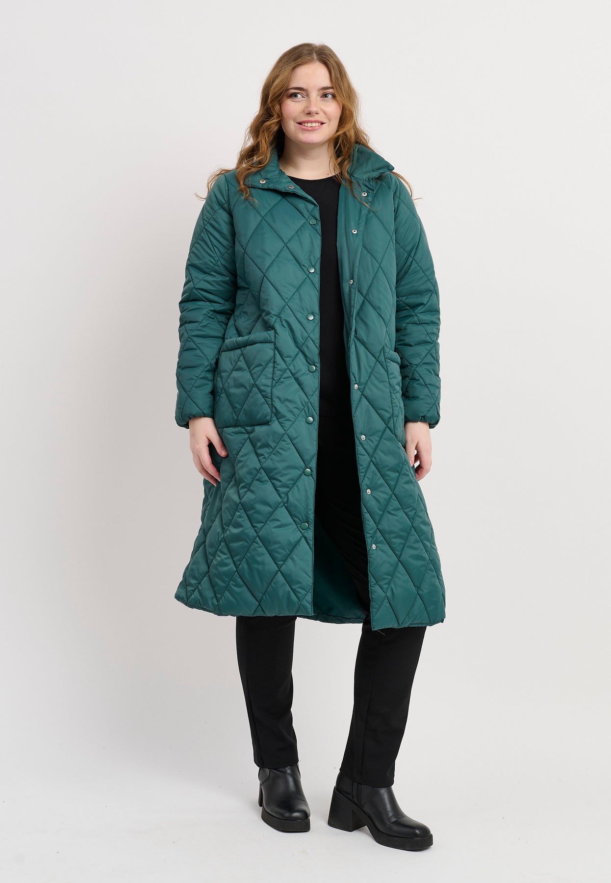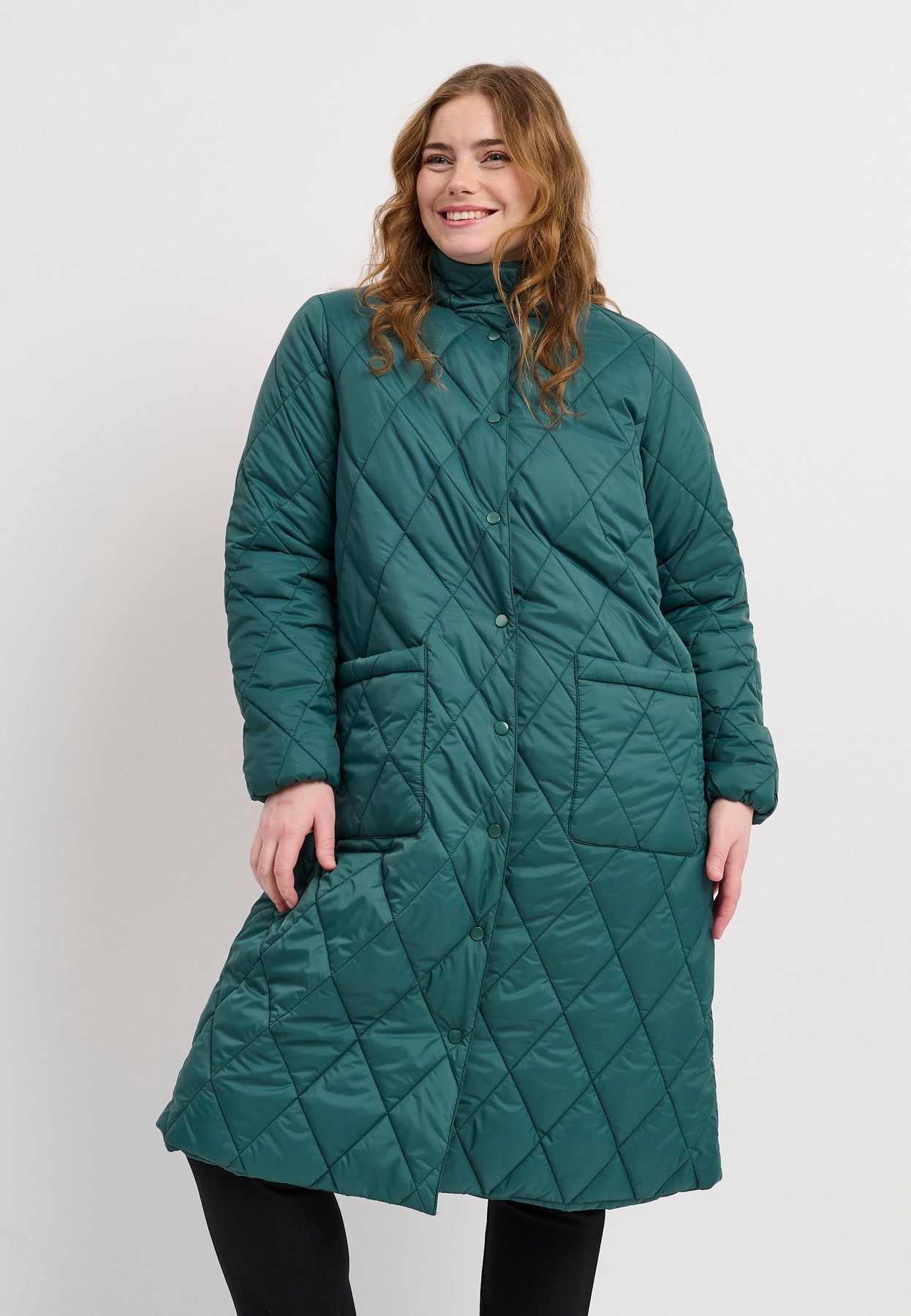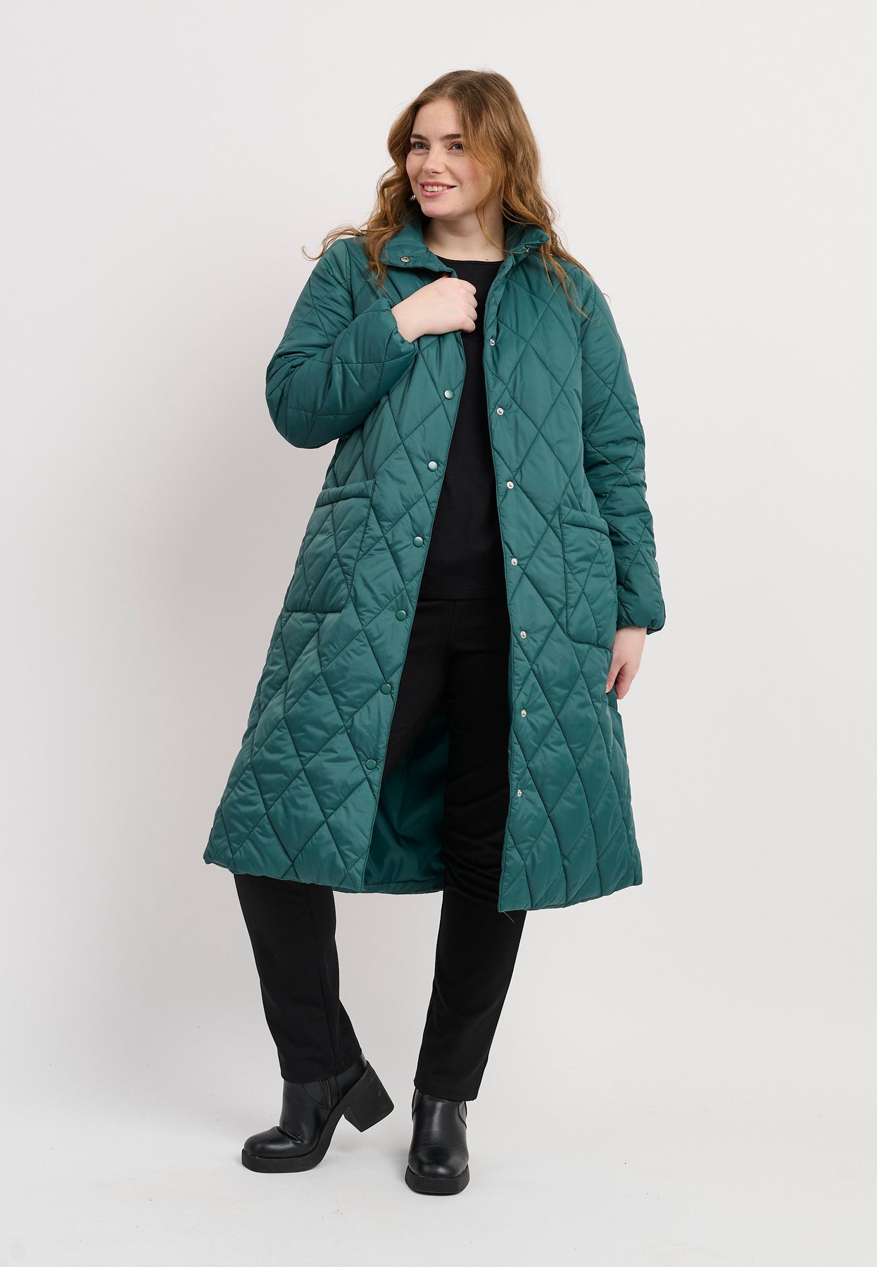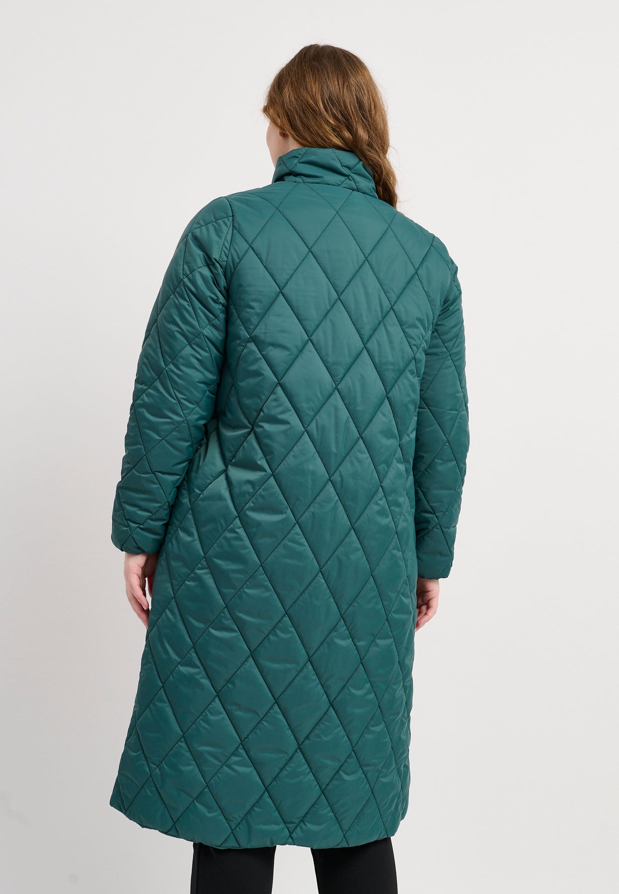 En stilfuld og funktionel jakke i en flot quiltet kvalitet, der kombinerer komfort og mode på bedste vis. Jakken har et moderne A-formet snit, der giver plads og bevægelsesfrihed, mens det elegante design med diskret glans gør den ideel til både hverdagsbrug og pænere lejligheder. Den gennemgående lynlås og høje krave sikrer varme og beskyttelse på kølige dage.