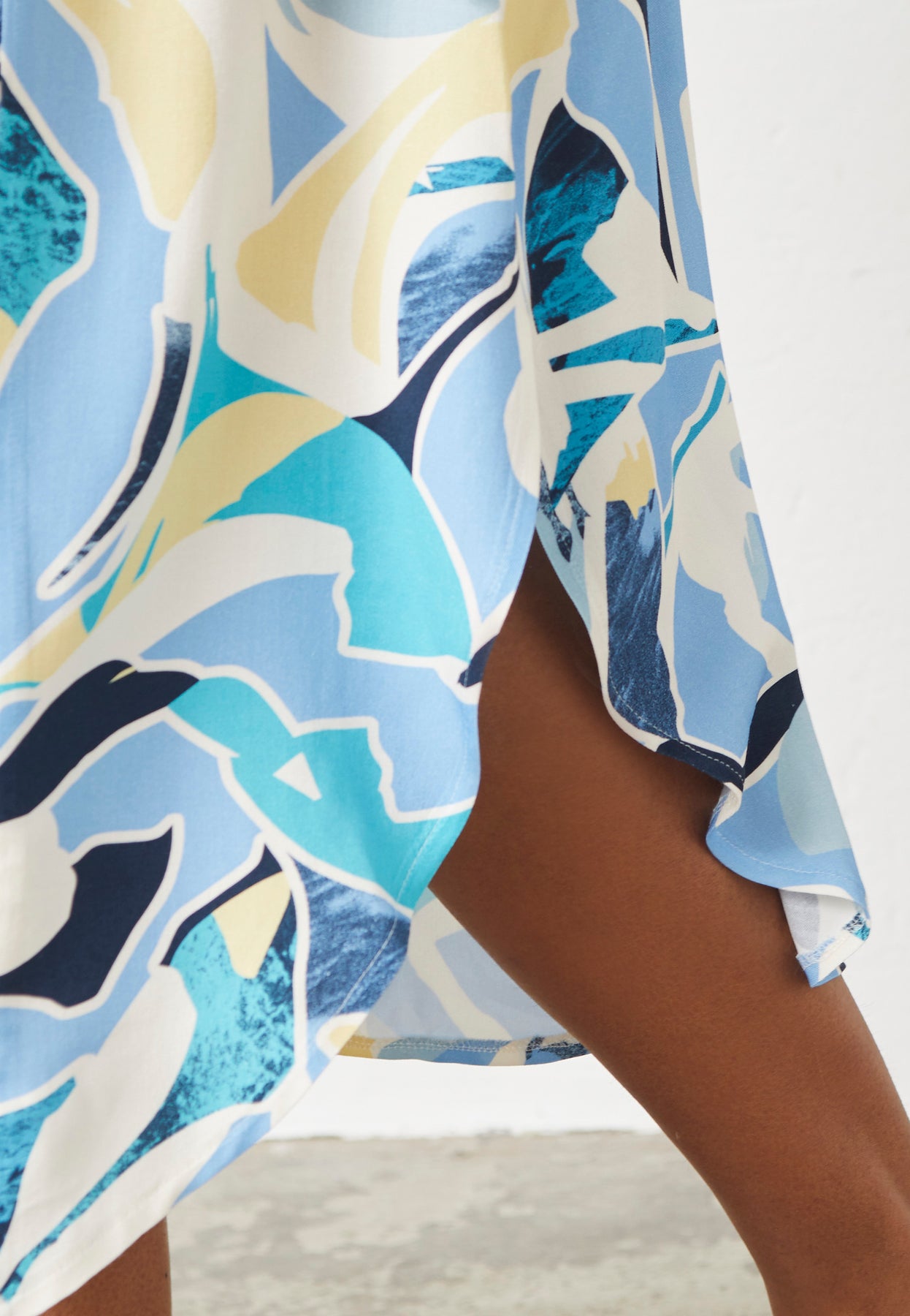Modellen hedder PNSammy og er lavet af 100% viskose. Pasformen er 'A-Shape', og den er 115 cm lang bagtil.