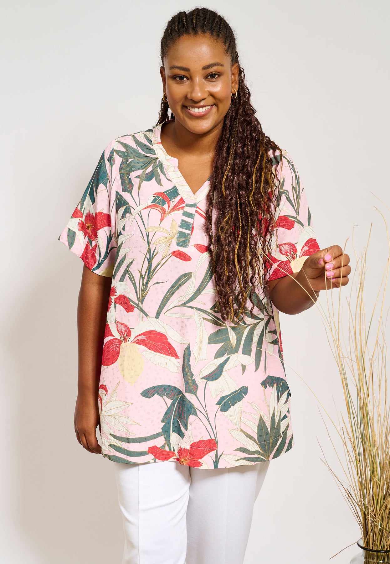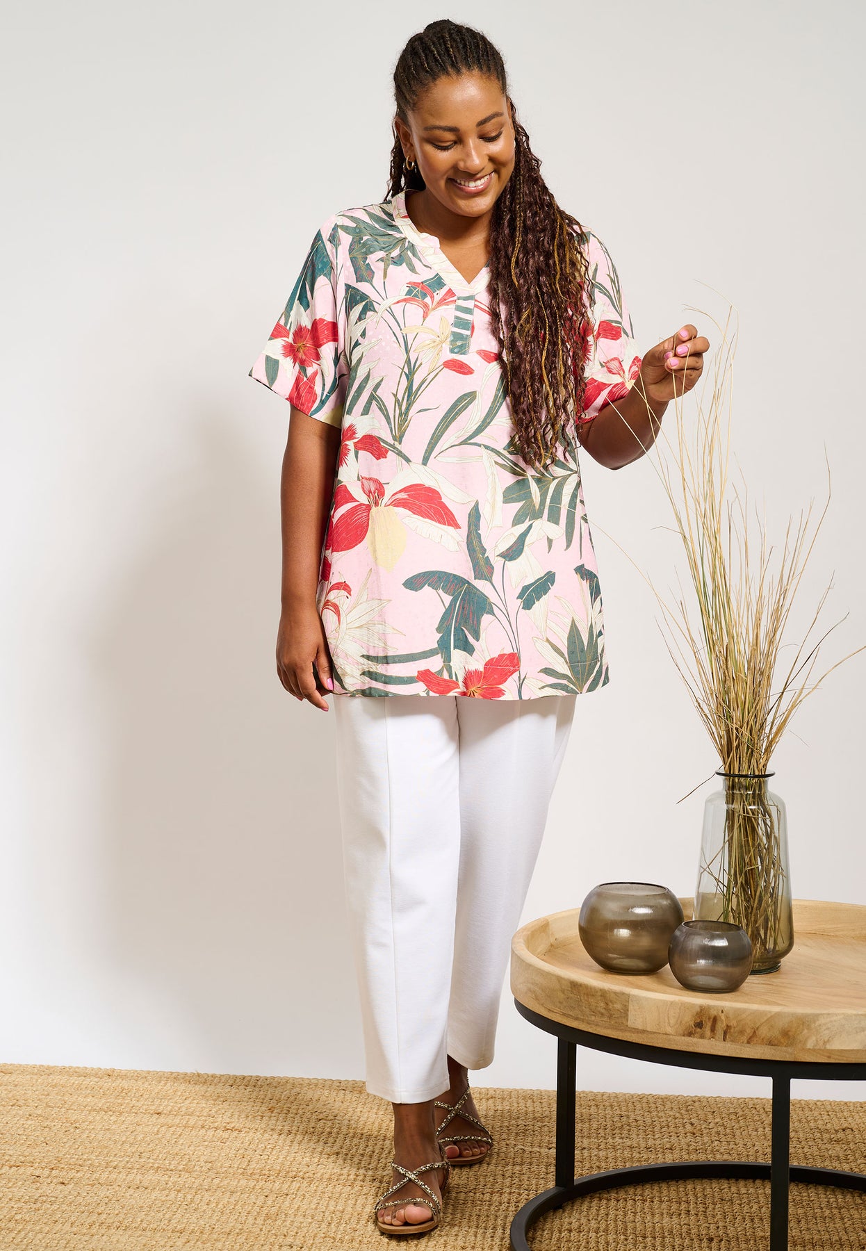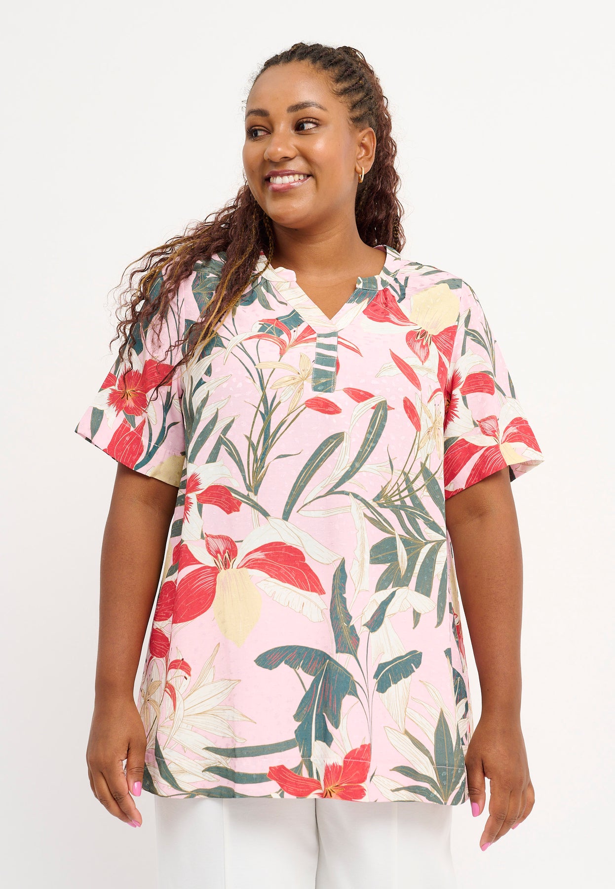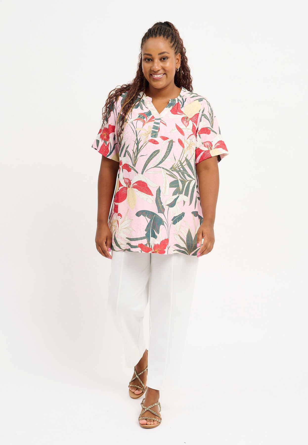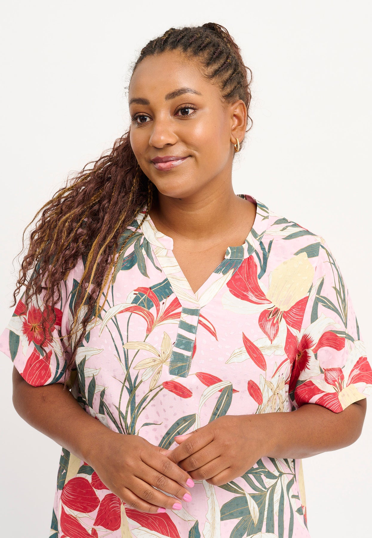 Denne luftige tunika fra Pont Neuf er et eksempel på sommerens lethed og elegance. Den store, blomstrede print indfanger essensen af sæsonens lethed og farveglæde. Med sin rummelige pasform og afslappede ærmer er denne tunika både behagelig og flatterende.