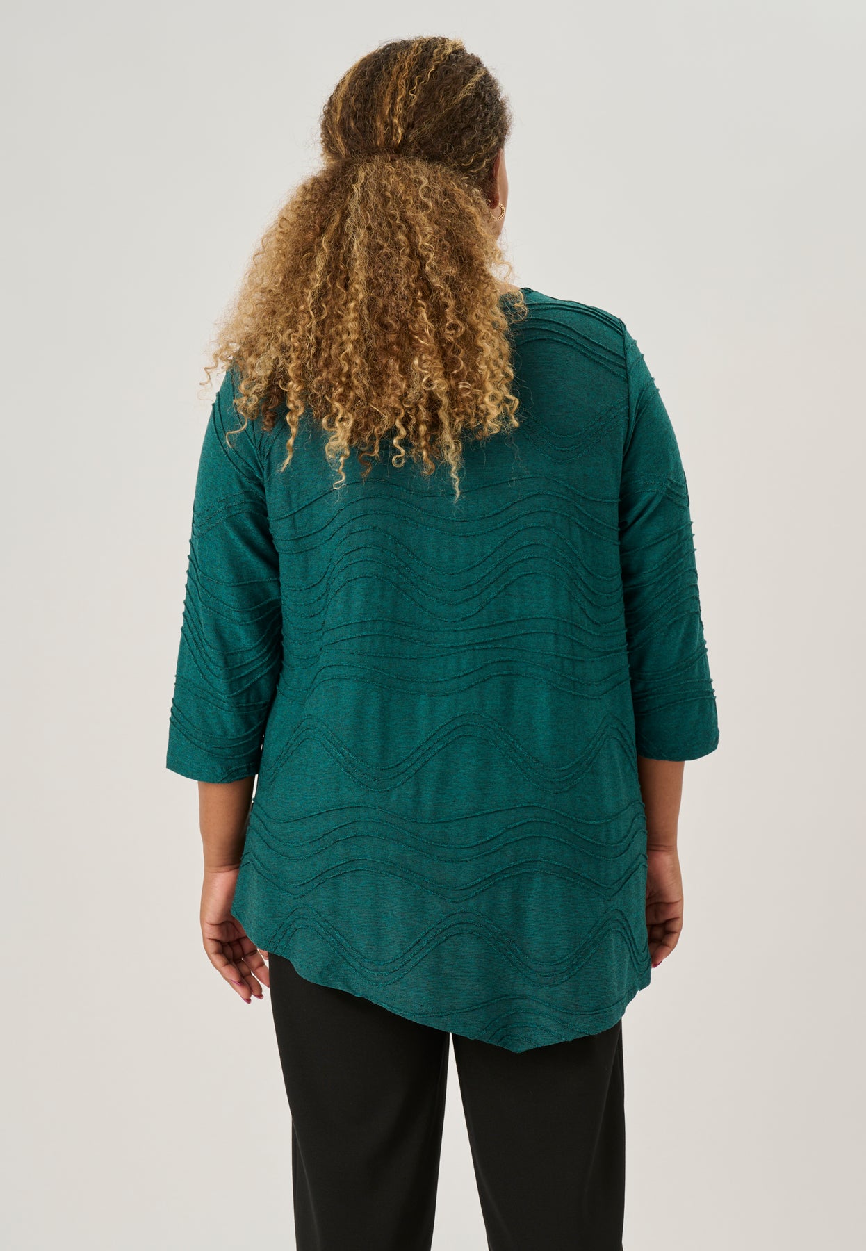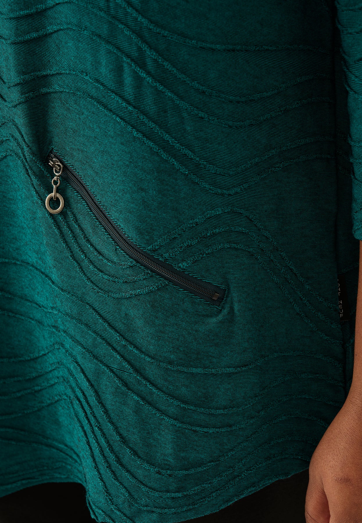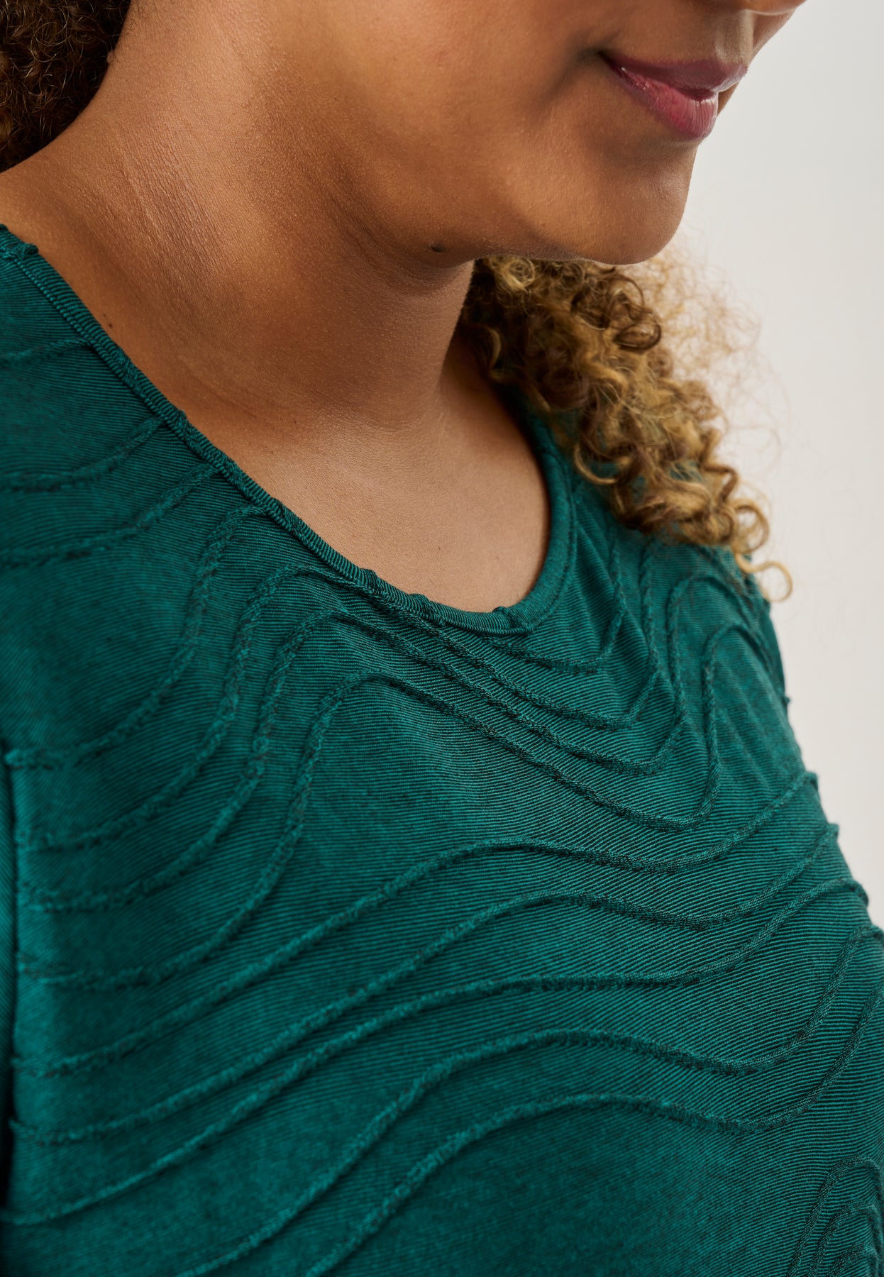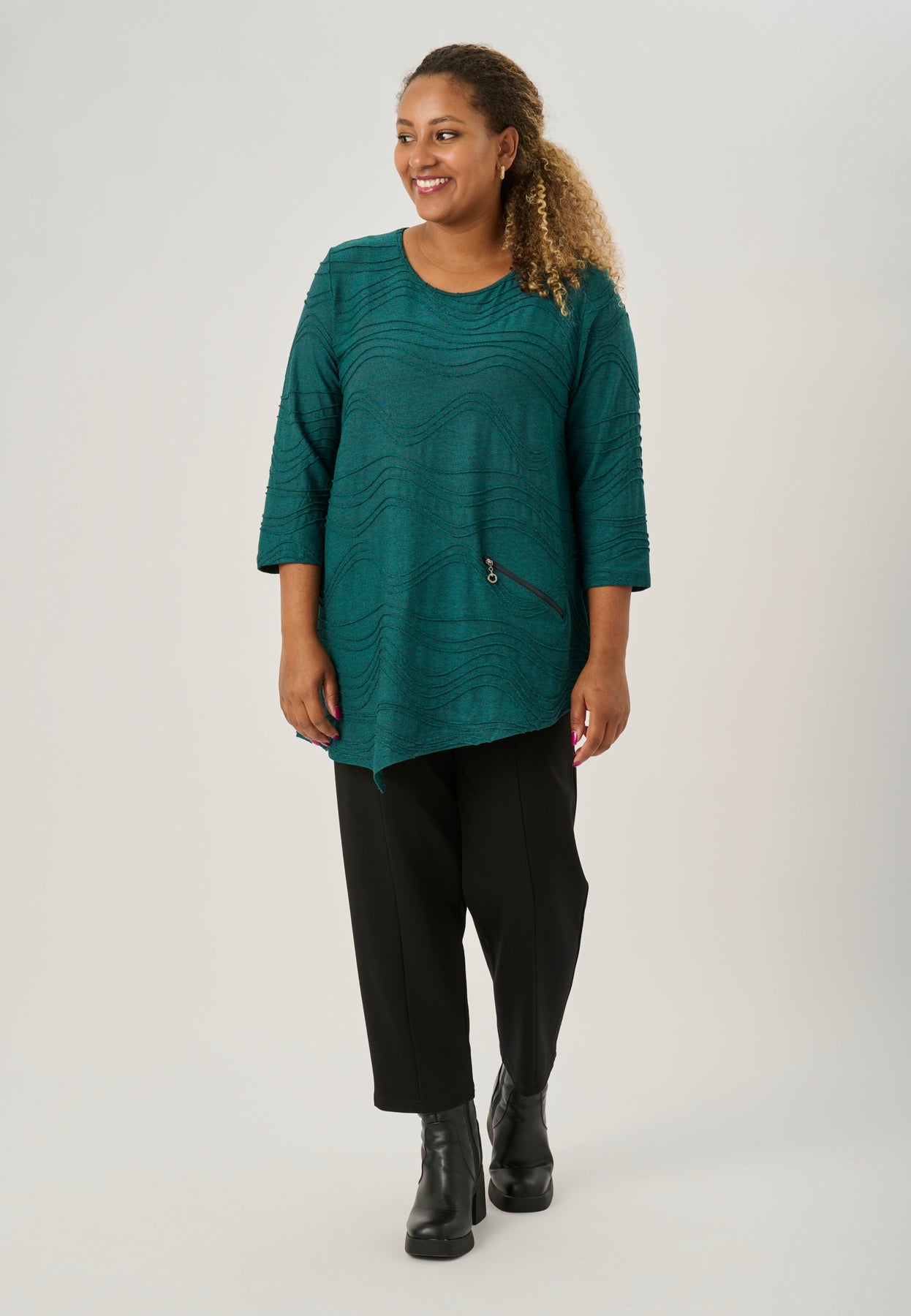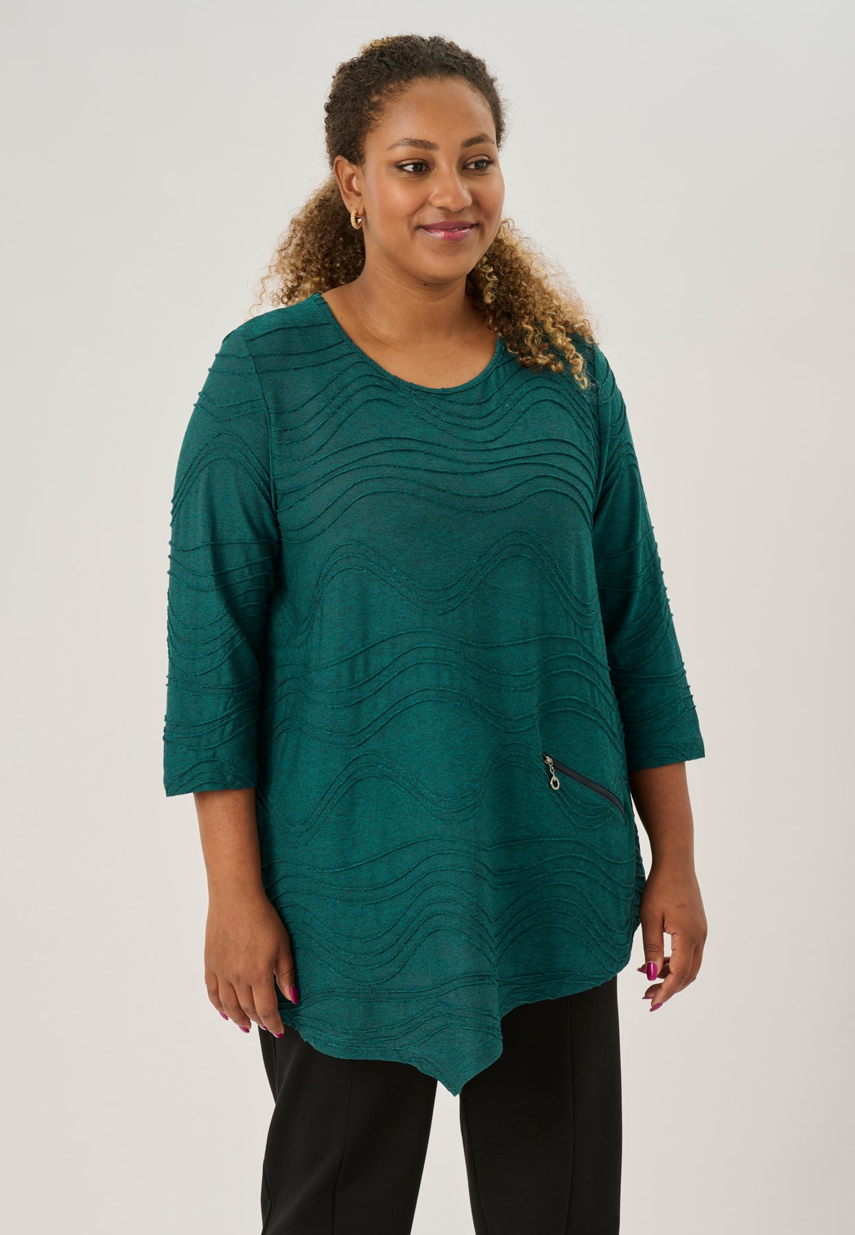 Skøn, kort tunika med en rund halsudskæring, lynlåslomme i siden og ¾-lange ærmer. Den har et asymmetrisk og ensfarvet design med et bølget mønster i stoffet. Tunikaen er udført i en fantastisk viskoseblanding med stræk og har en A-formet pasform.