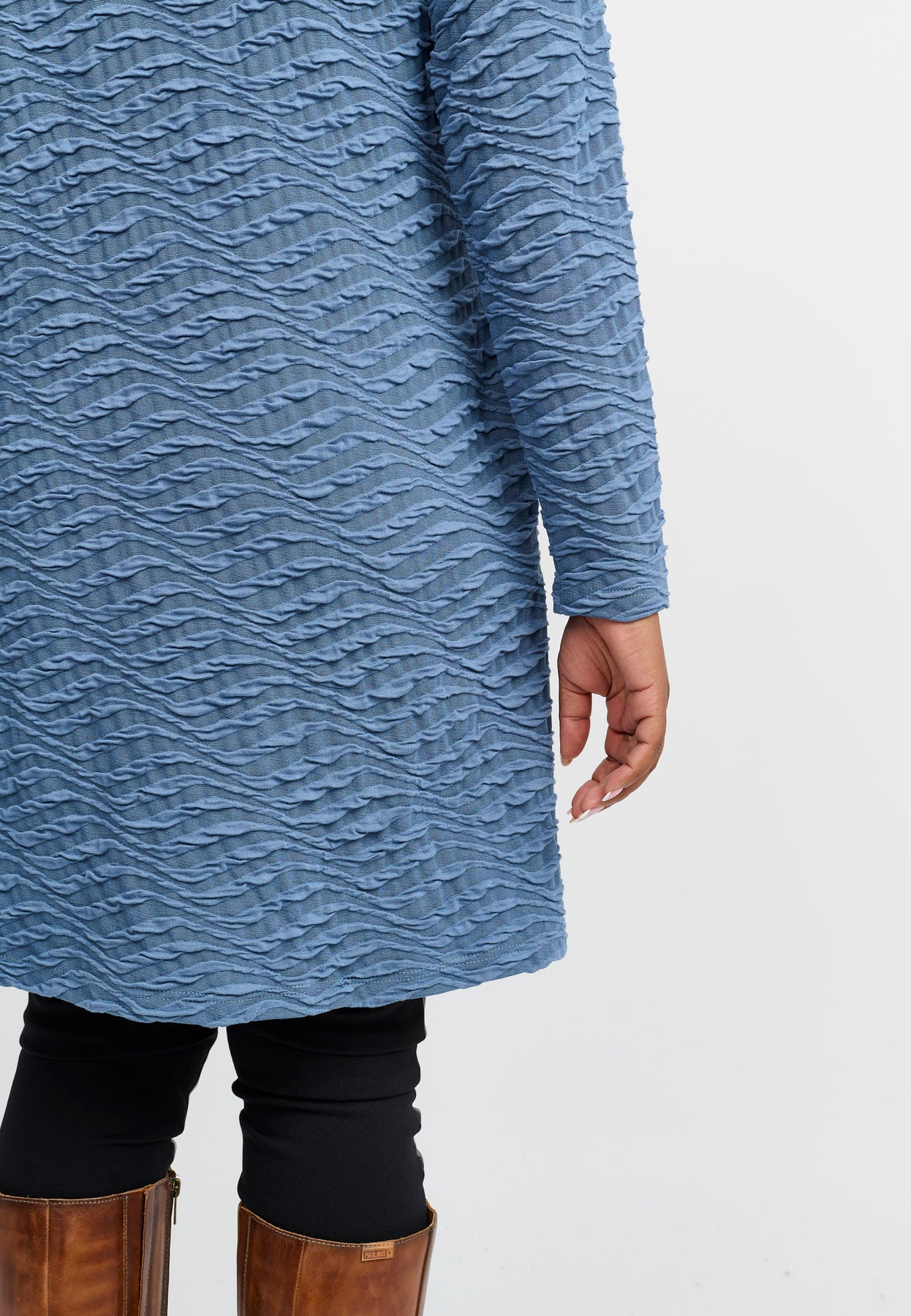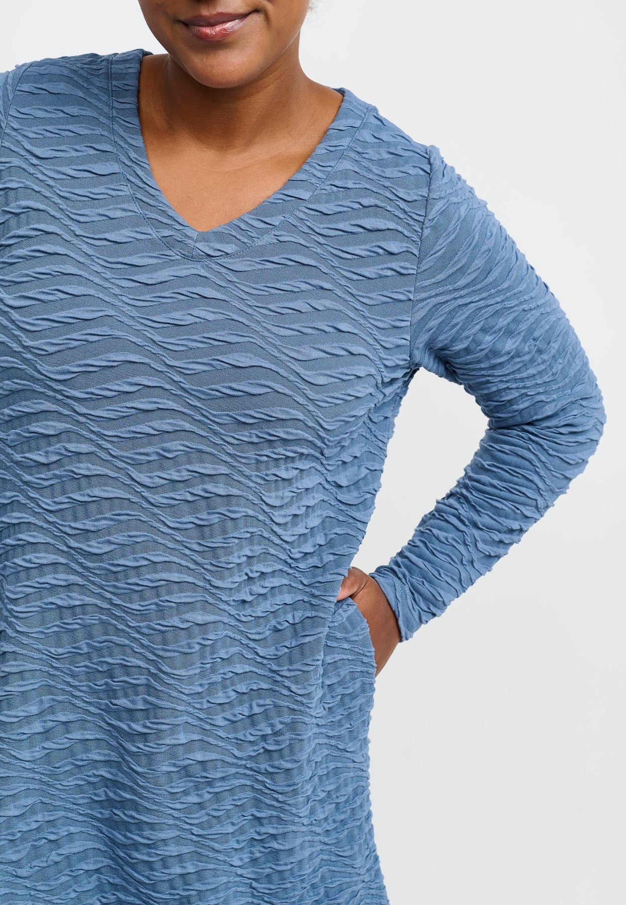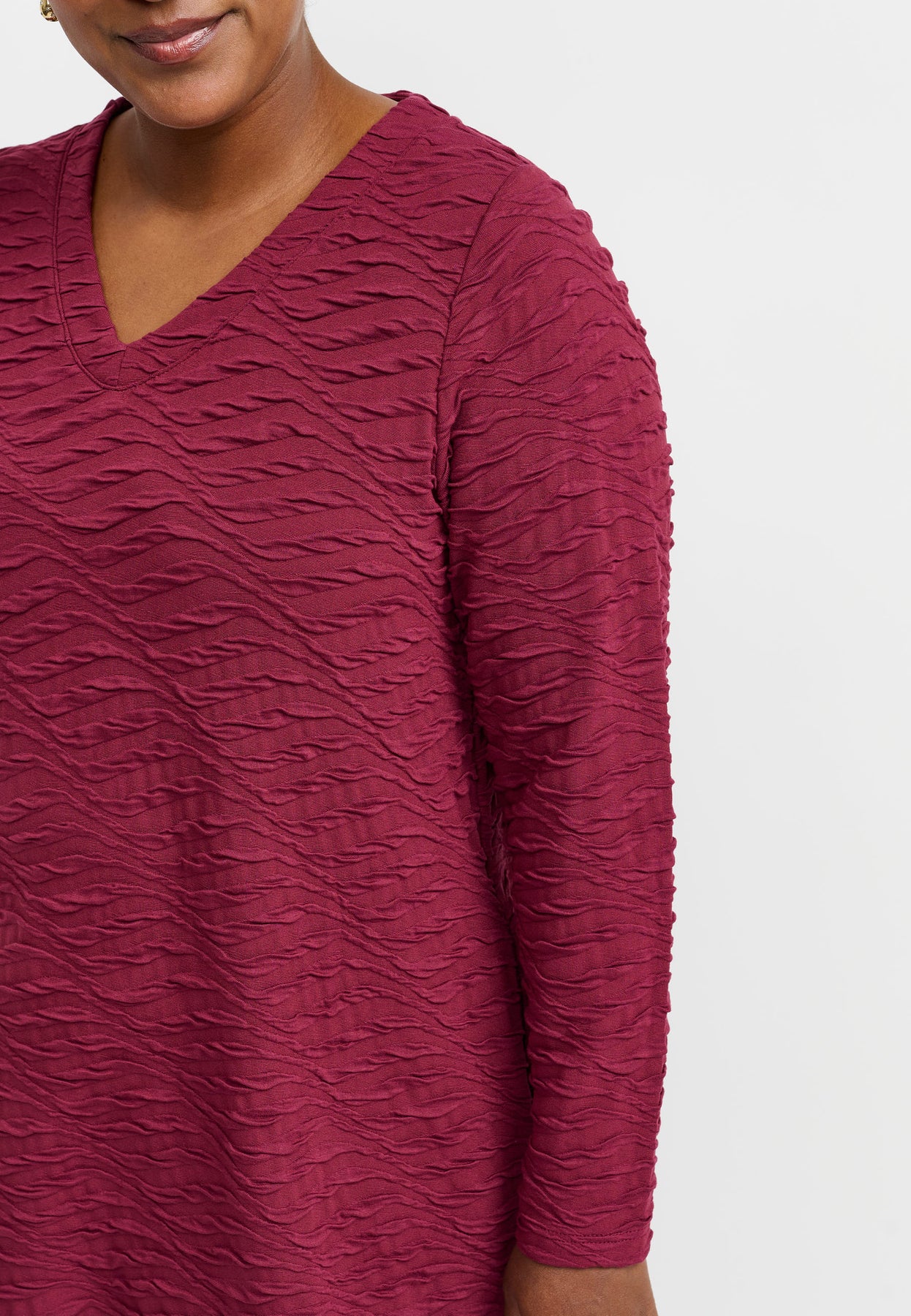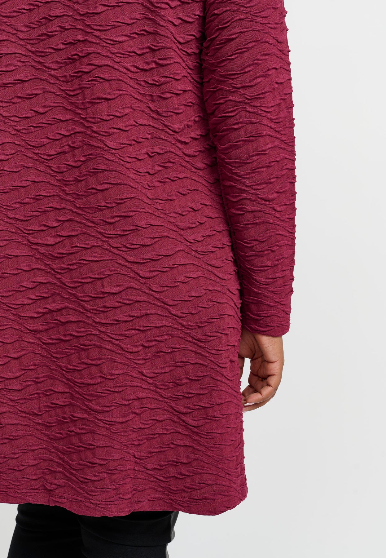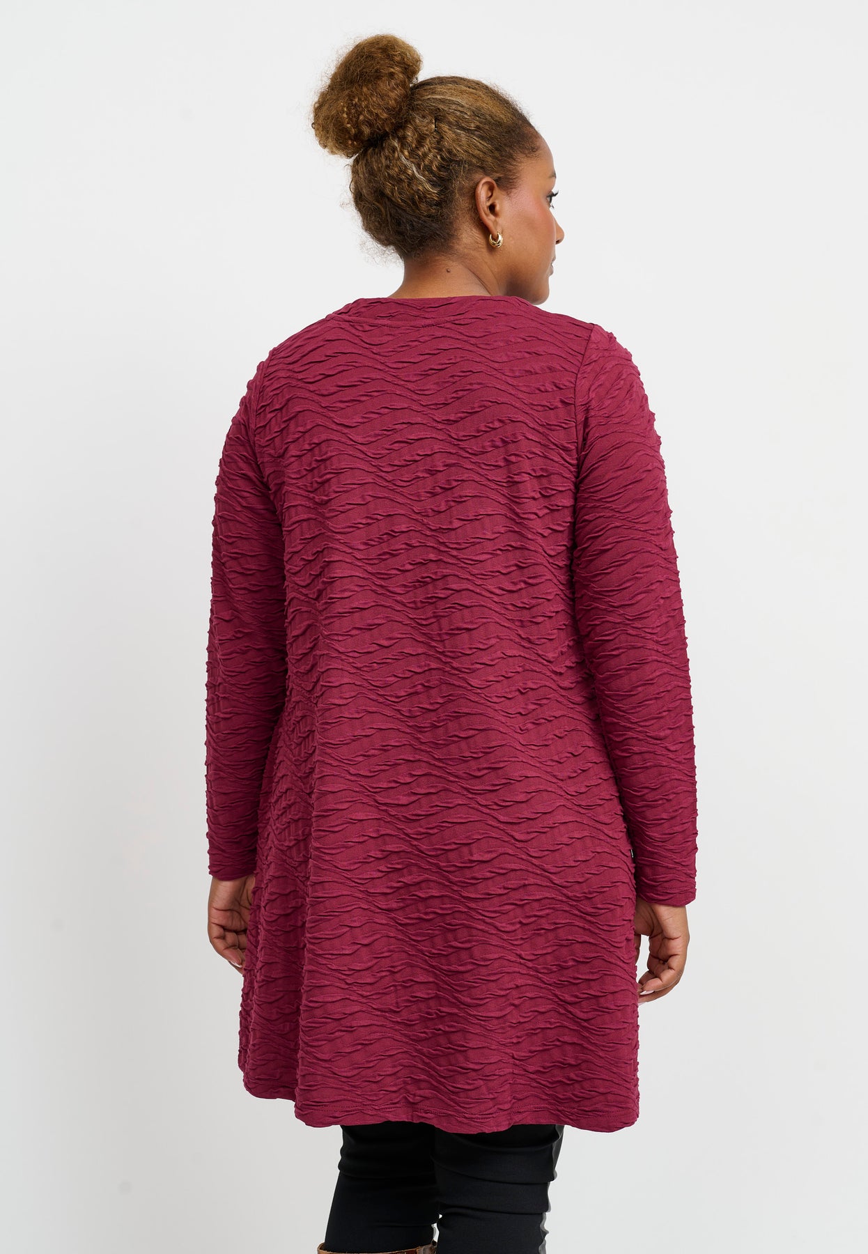 En moderne og komfortabel tunika i en smuk, dyb bærfarve med en diskret ribstruktur. Den A-formede pasform giver et feminint fald og gør modellen velegnet til mange kropsformer. Den bløde jerseykvalitet med viskose, nylon og elastan giver både struktur, stretch og en behagelig fornemmelse mod huden. Tunikaen har rund hals, lange ærmer og en god længde, der gør den ideel sammen med leggings eller smalle jeans.