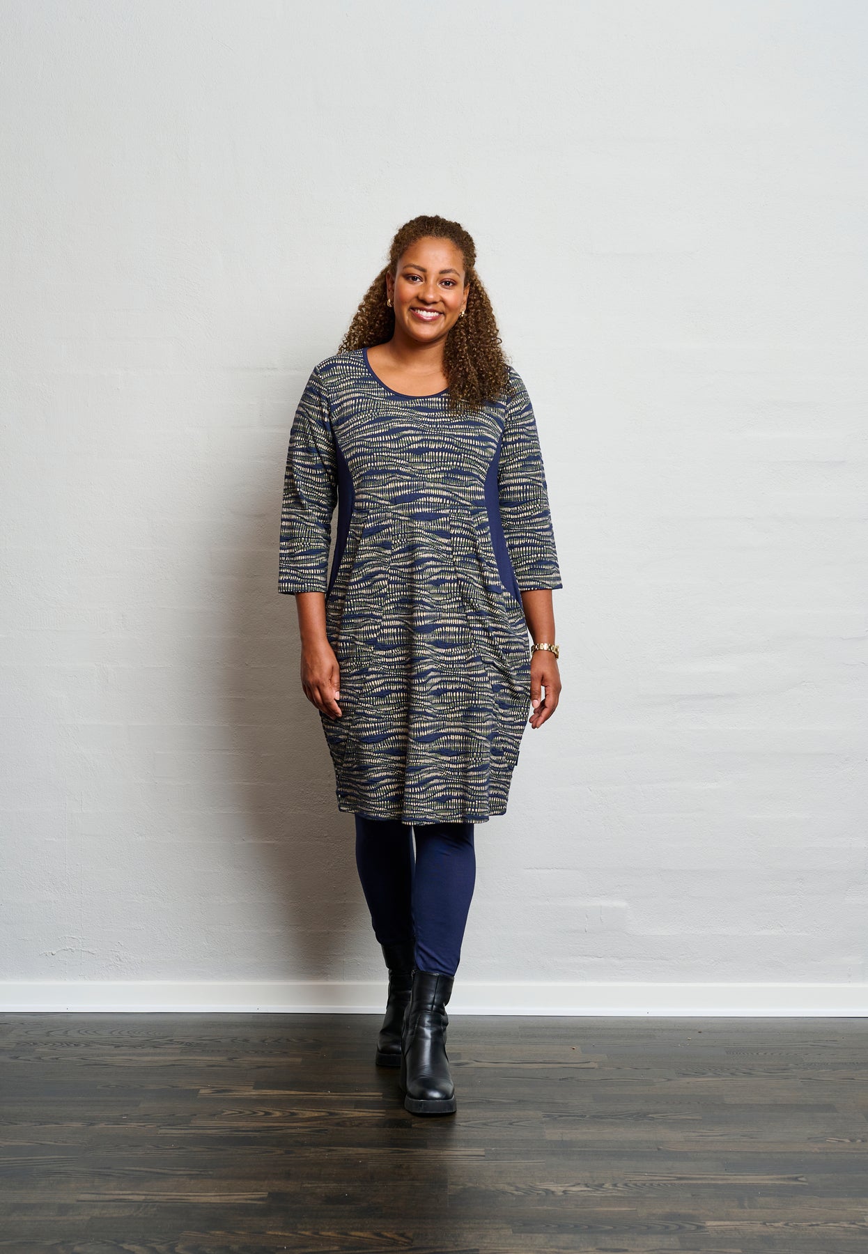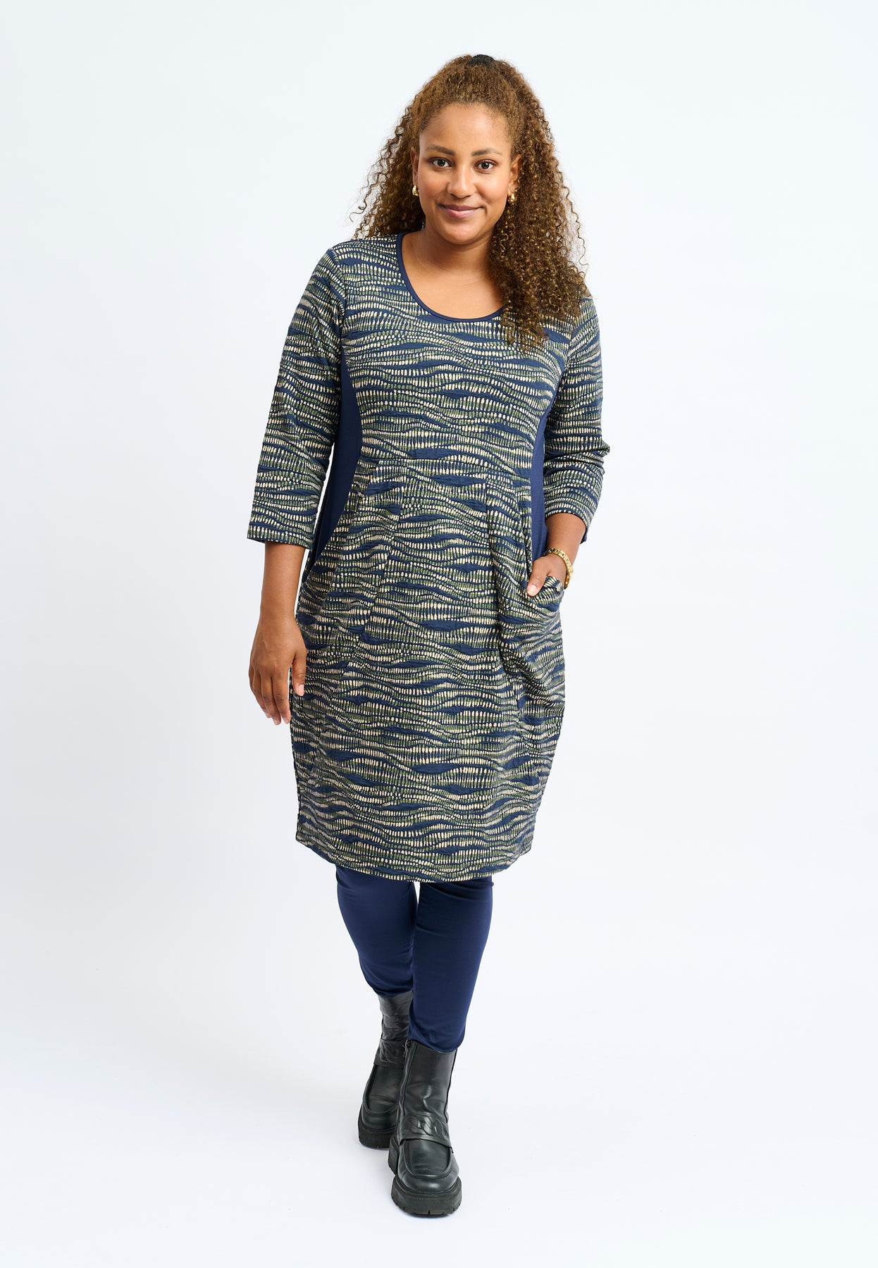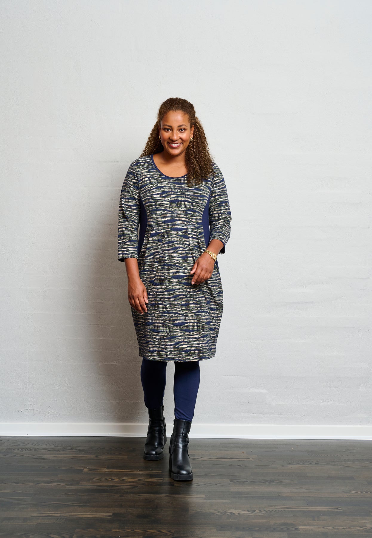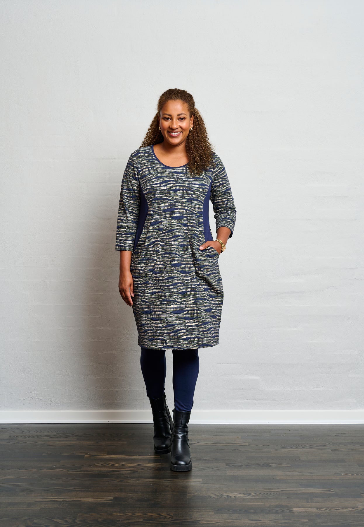 Denne smukke kjole fra Pont Neuf kombinerer moderne design med en fremragende pasform. Kjolen har en subtil struktur, der tilføjer dybde og karakter til dit outfit. De trekvartlange ærmer og runde halsudskæring giver kjolen et afslappet og stilfuldt udseende. De praktiske sidelommer tilføjer både funktionalitet og en casual vibe.