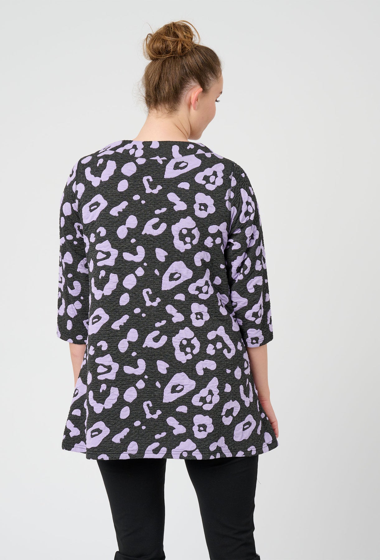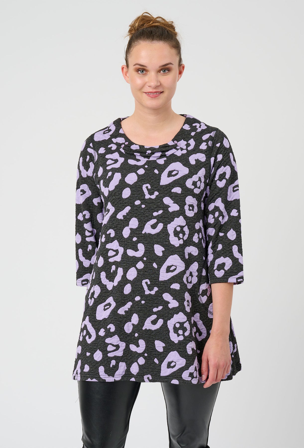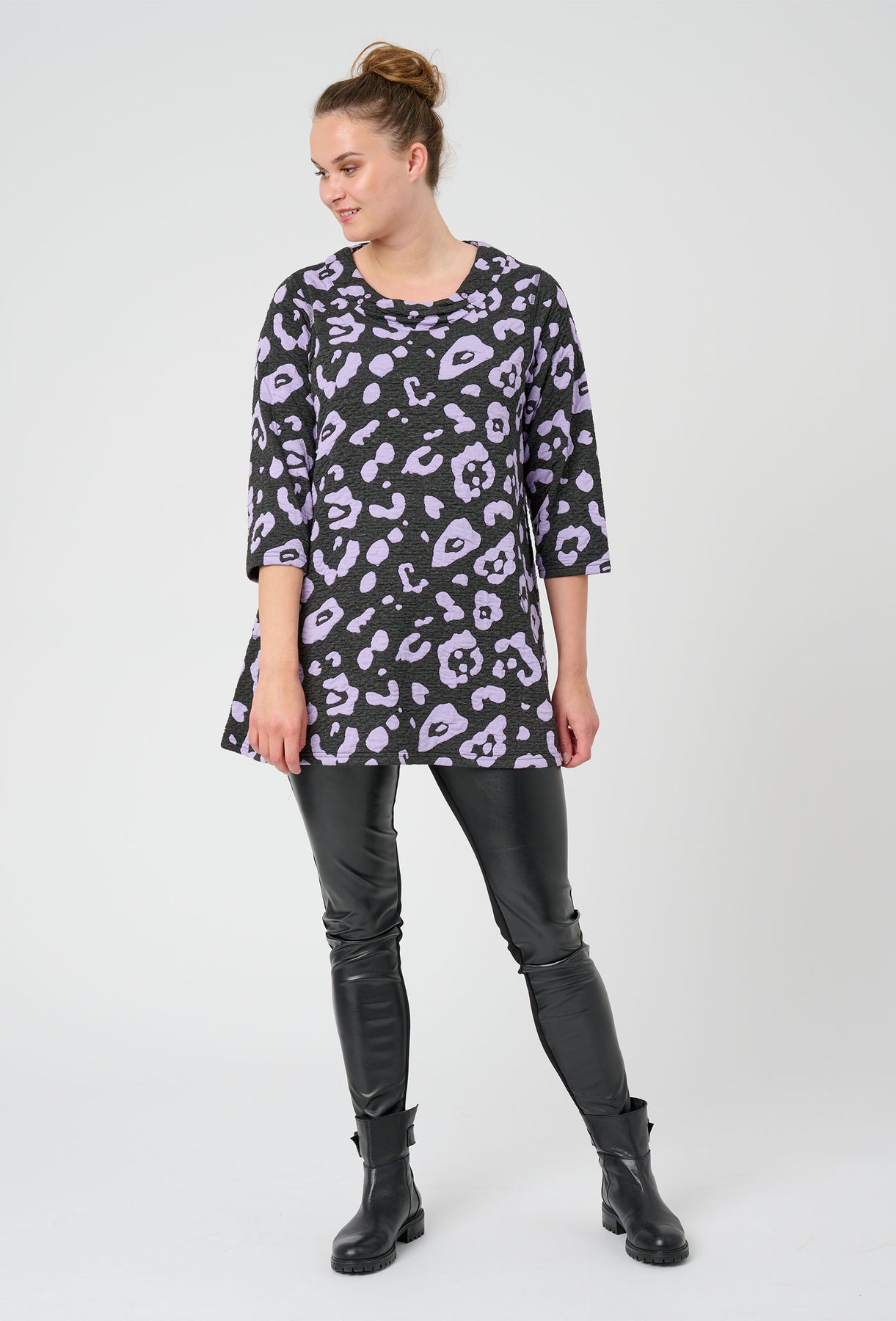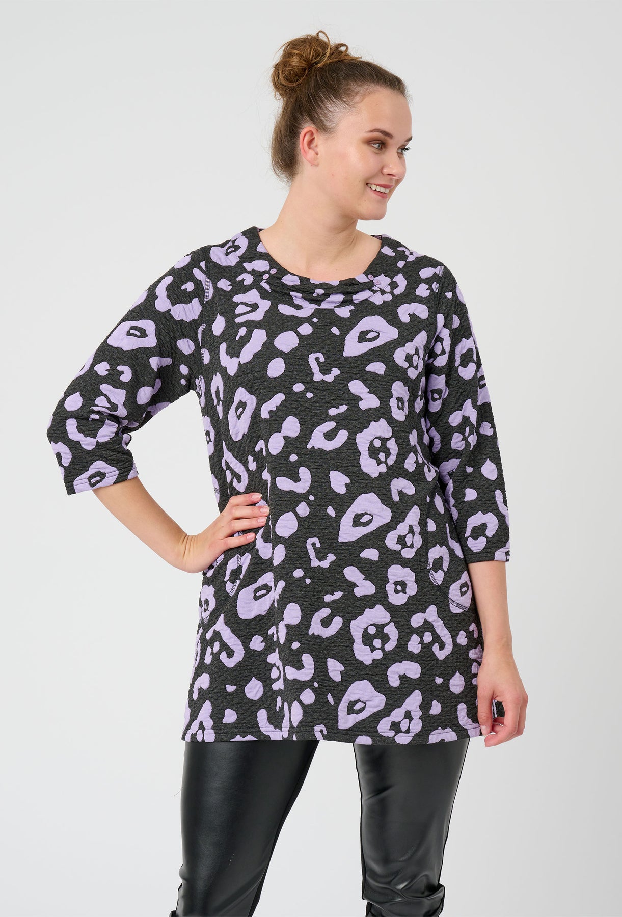 Skøn tunika med ¾-lange ærmer og søde detaljer ved halsen. Tunikaen har lommer i siderne, et mønstret design i de fineste farver og en lækker struktur i stoffet. Modellen er udført i en god viskoseblanding, og den har en A-formet pasform.