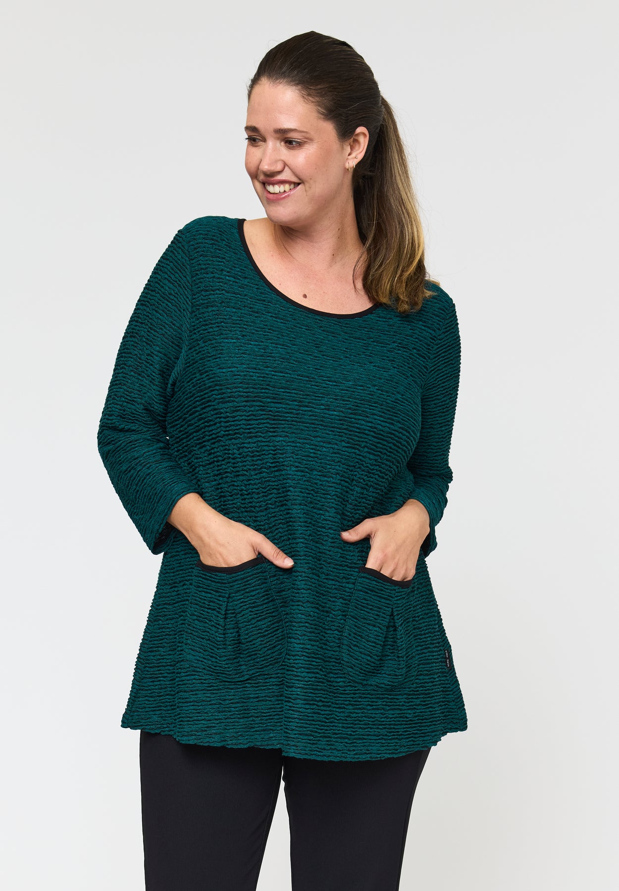 Lotte Tea er en flot og klassisk bluse med A-formet pasform og lommer foran, der tilfører et praktisk element til designet. Den melerede effekt i stoffet skaber et spændende udtryk, som passer perfekt til både hverdags- og kontorbrug. Blusens længde og afslappede stil gør den nem at kombinere med forskellige bukser eller leggings.