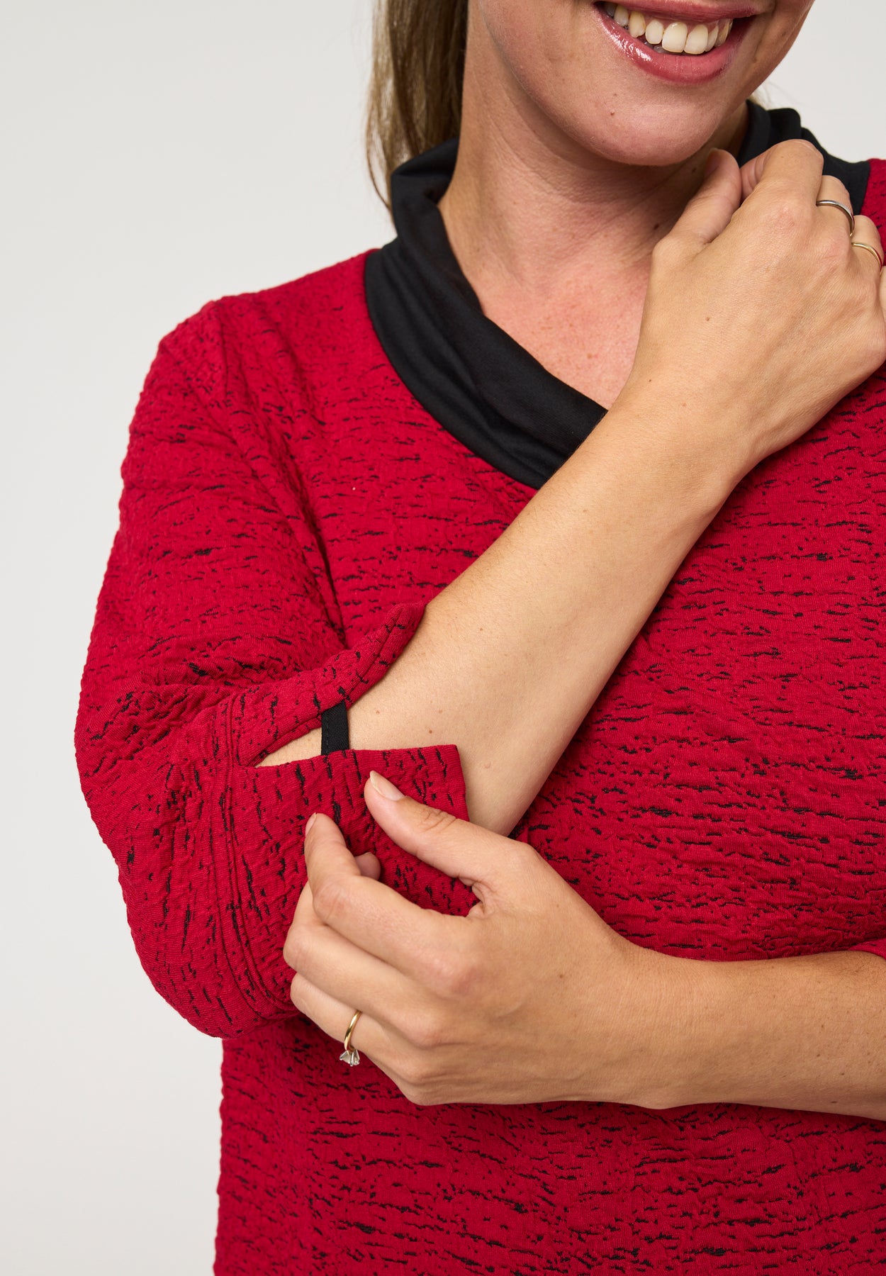Steffi er en smart bluse med en flot farve, der giver et stilfuldt og moderne look. Blusen har en rund hals med kontrastdetaljer, som tilføjer ekstra kant til det enkle design. De trekvartlange ærmer gør den til et perfekt valg til både hverdag og fest, og den bløde kvalitet sikrer en behagelig pasform.