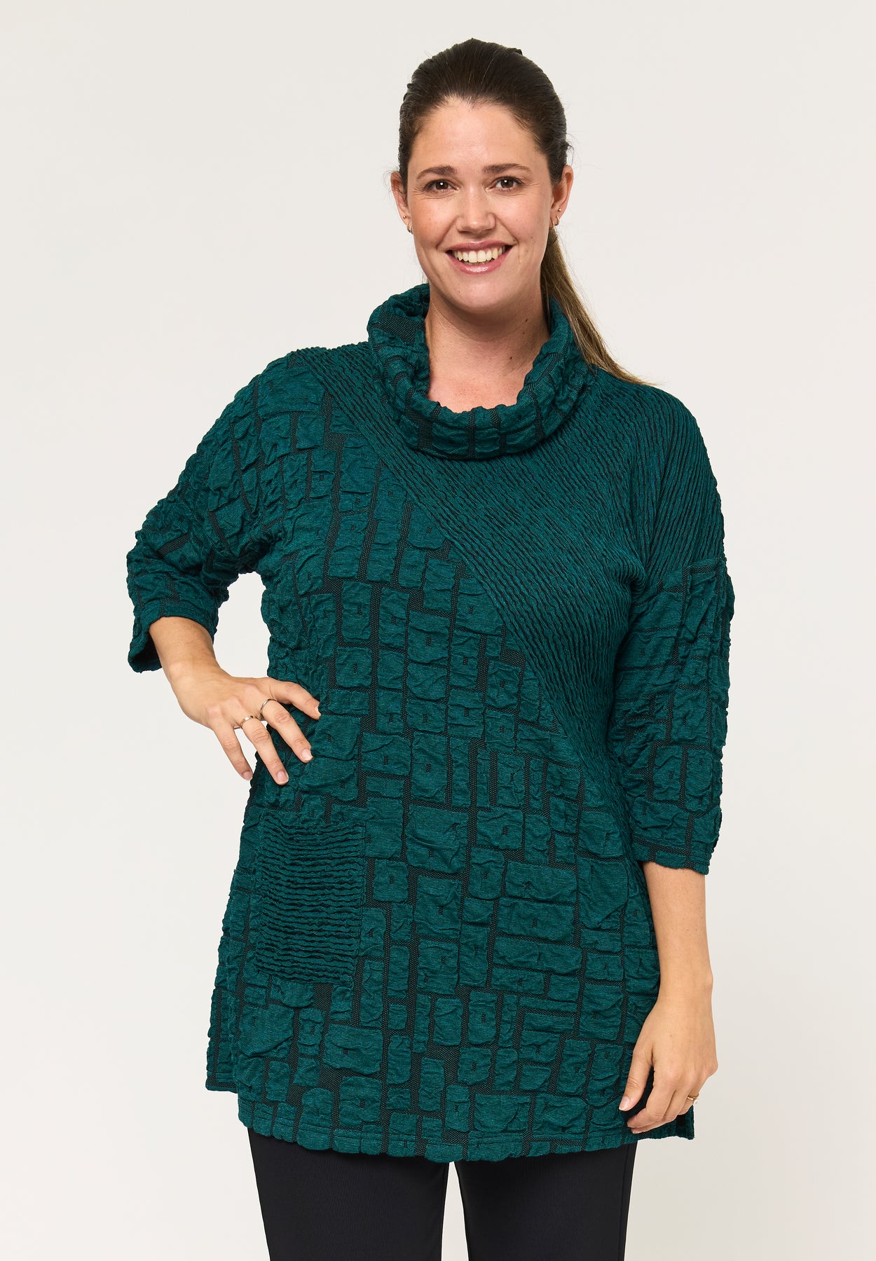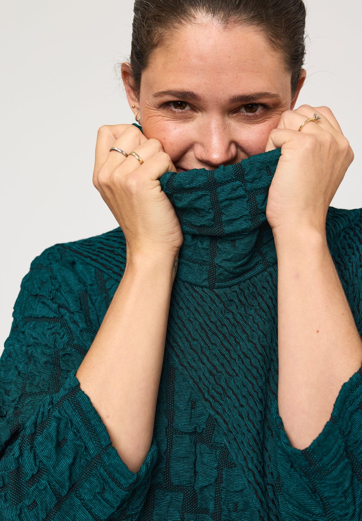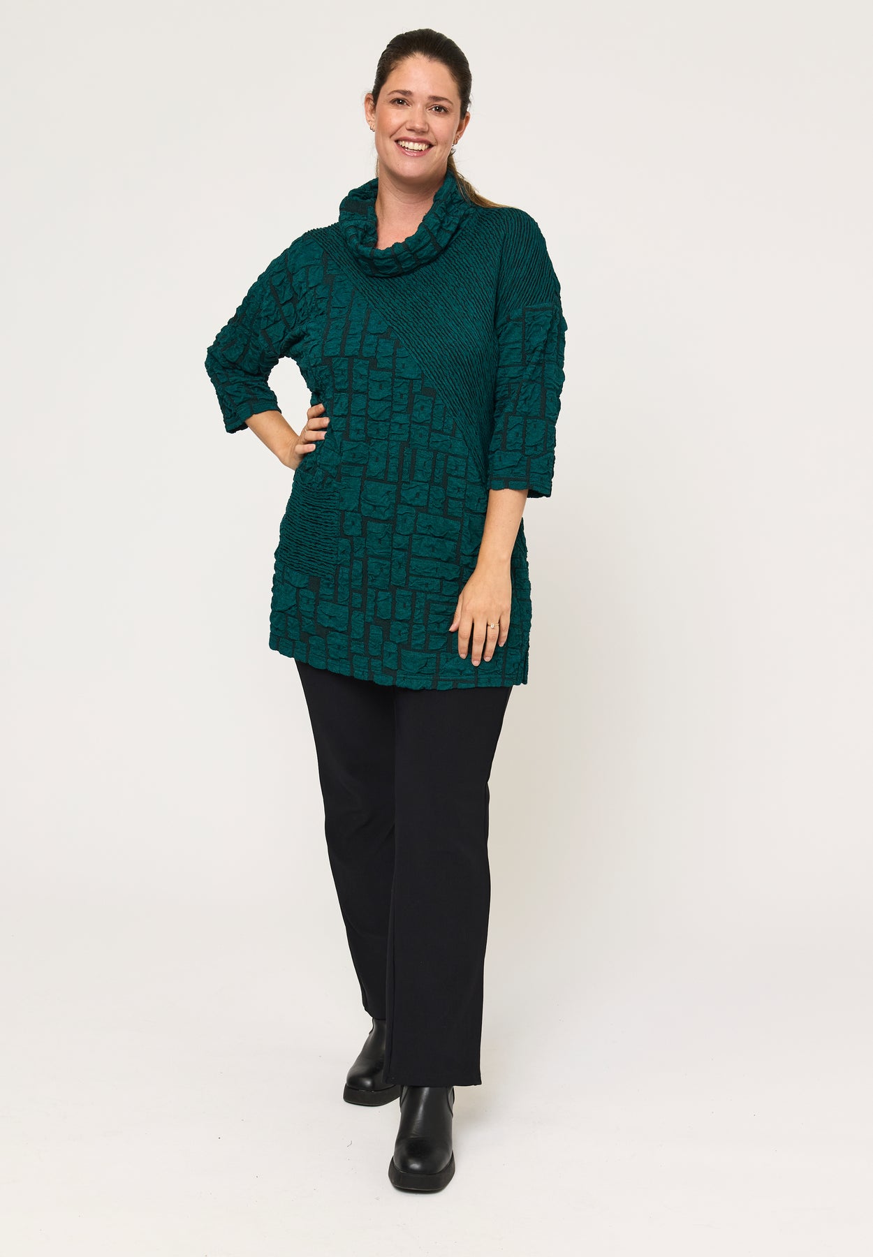 Dorina er en flot tunika med et unikt mønster og farvekombination, der skiller sig ud fra mængden. Tunikaen har lange ærmer og en lige pasform, hvilket gør den perfekt til både hverdag og mere afslappede arrangementer. Det behagelige mix af viskose, polyester og elastan gør, at tunikaen sidder godt og giver en flot silhuet uden at gå på kompromis med komforten.
