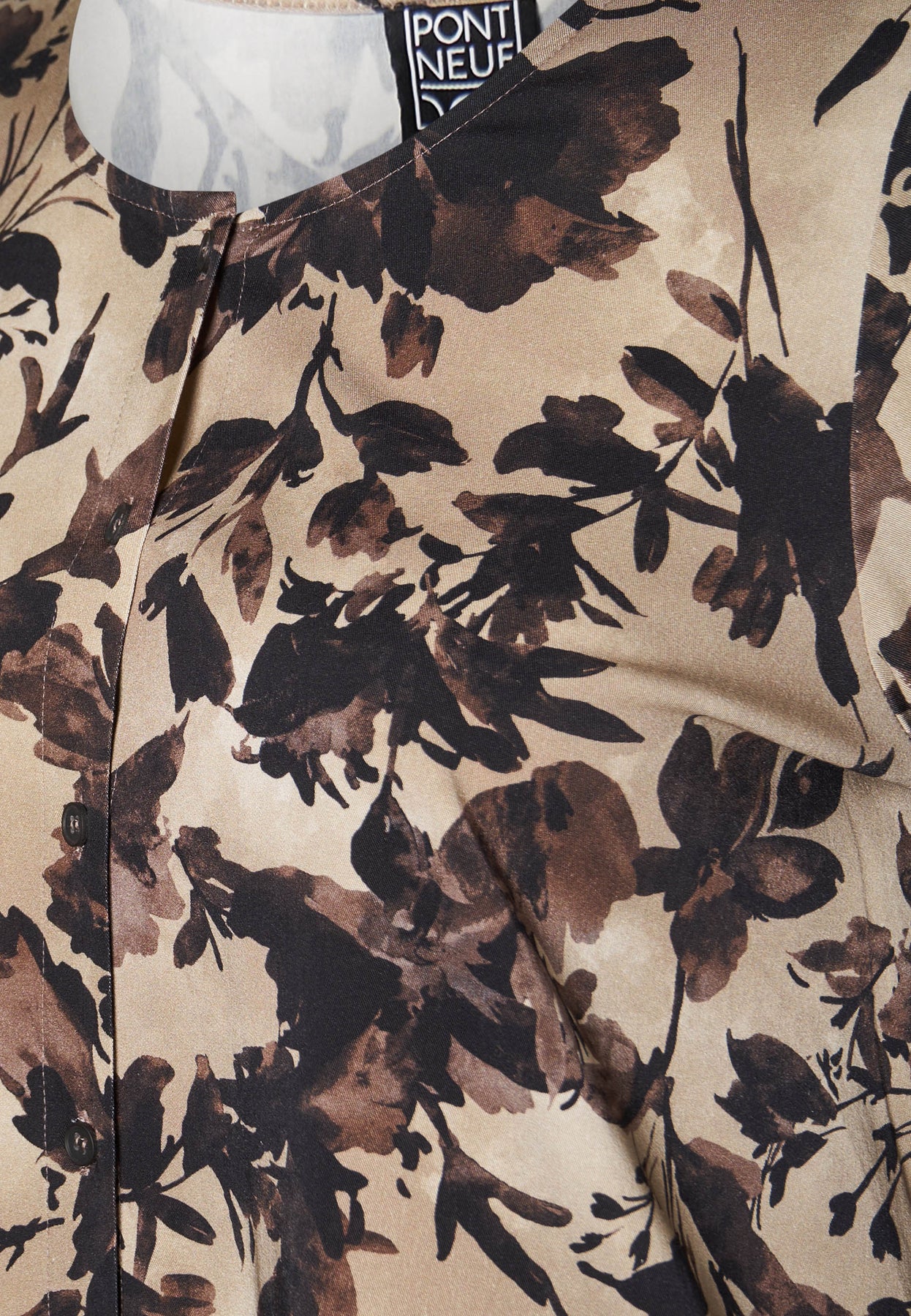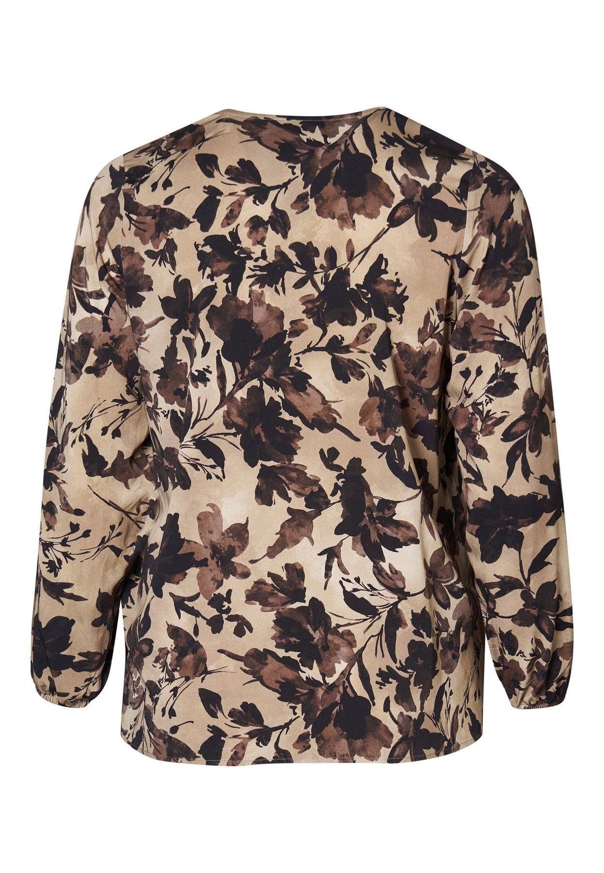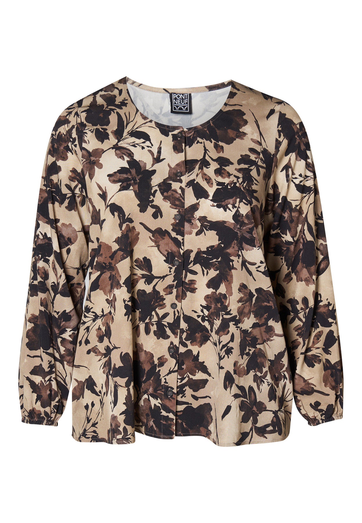 Denne bluse er kendetegnet ved sit smukke, abstrakte print i douce nuancer, der giver et kunstnerisk og feminint udtryk. Det A-formede snit falder let og skaber en silhuet, der føles både afslappet og elegant, mens det lette viskosemateriale understreger blusens luftige udtryk.
